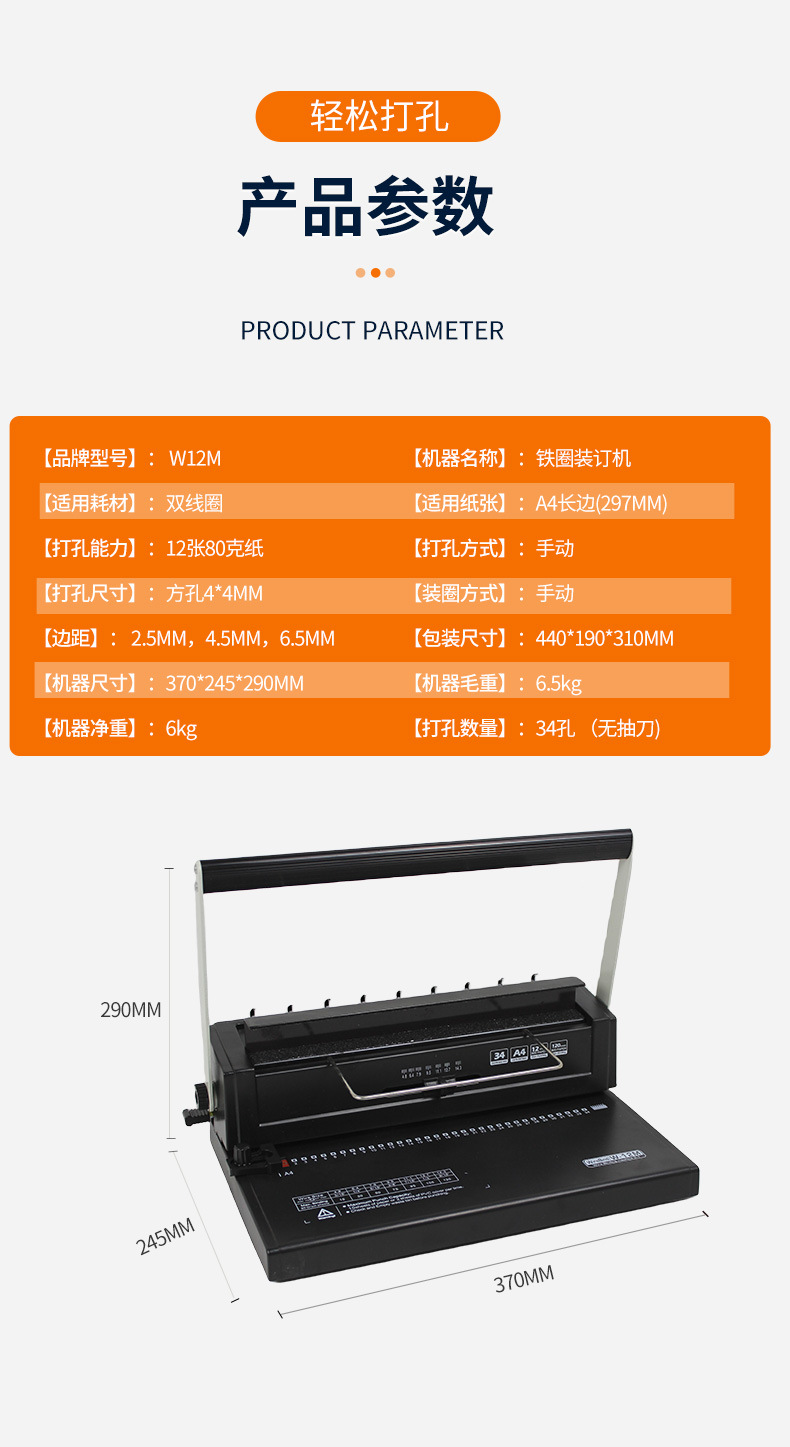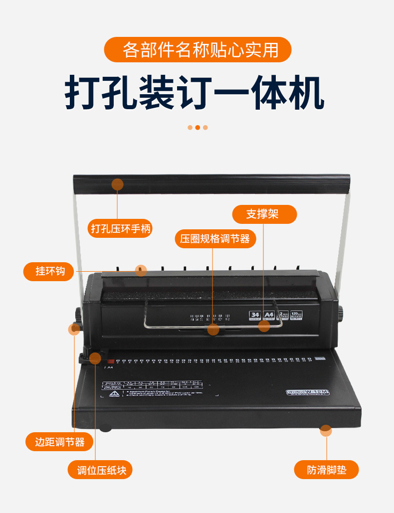 Машина W12M для скрепления с железным кольцом, 34 отверстия, для меню