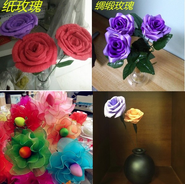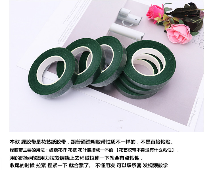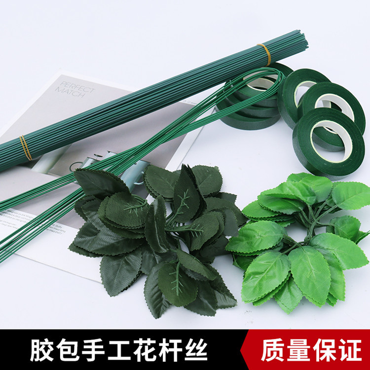 Цветочный стержень № 2 ручной работы из шелковой сетки Kawasaki Rose, материалы для цветов, креповая бумага, пластиковый пакет, зеленая проволока