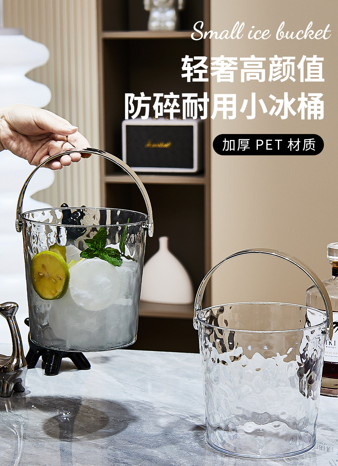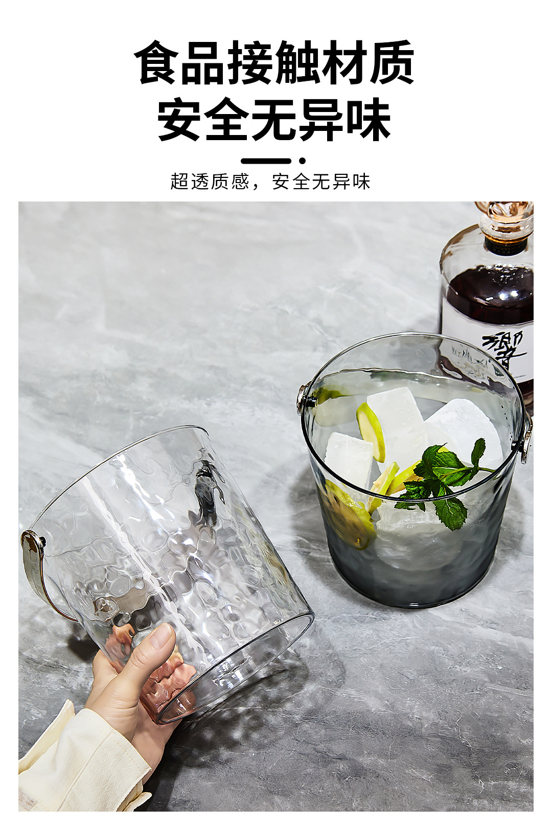 Ведро для льда с легким люксом, утолщенное прозрачное ведро для льда, высококрасивая емкость для домашнего и коммерческого использования, ведро для пива в баре KTV