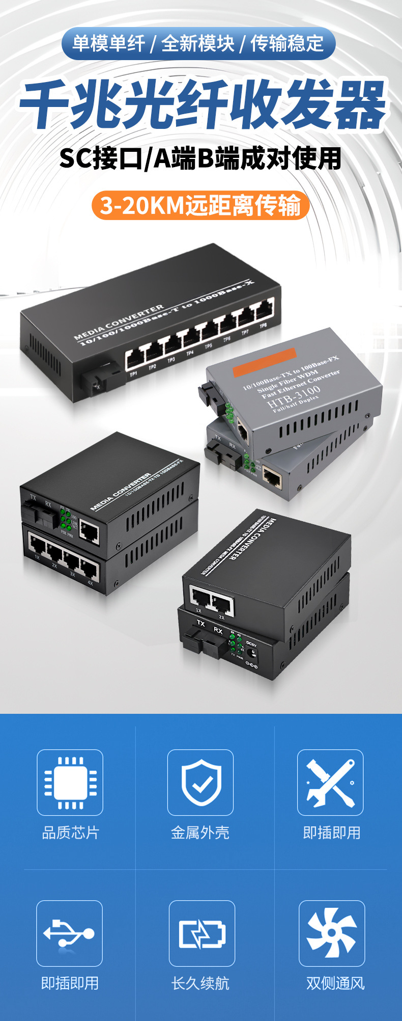 Промышленный гигабитный оптический трансивер однофотонный 1 оптический 2 электрических 4 электрических 100 Мега фотоэлектрический преобразователь 8 электрических трансиверов