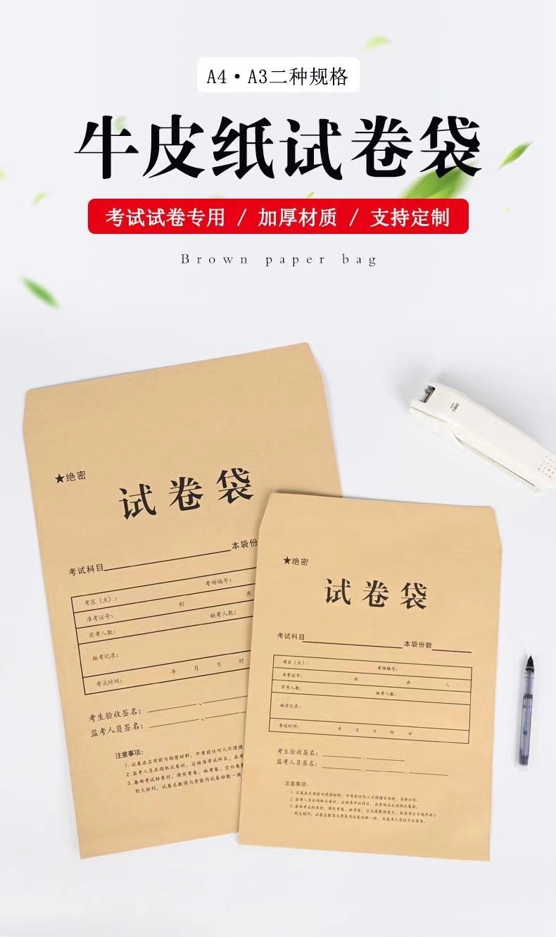 Пакет для тестовых бумаг A4 из крафт-бумаги, пакет для файлов A3, запечатанный пакет для файлов, пакет для тестовых бумаг для студентов, пакет для тестовых бумаг A3, файл-пакет