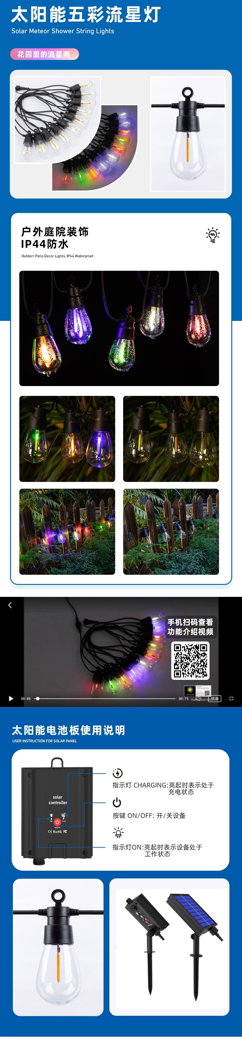 Кросс-бордерный свет с новым стилем уличного кемпинга, атмосферная светодиодная гирлянда, водонепроницаемый солнечный декоративный садовый свет S14 метеоритный свет