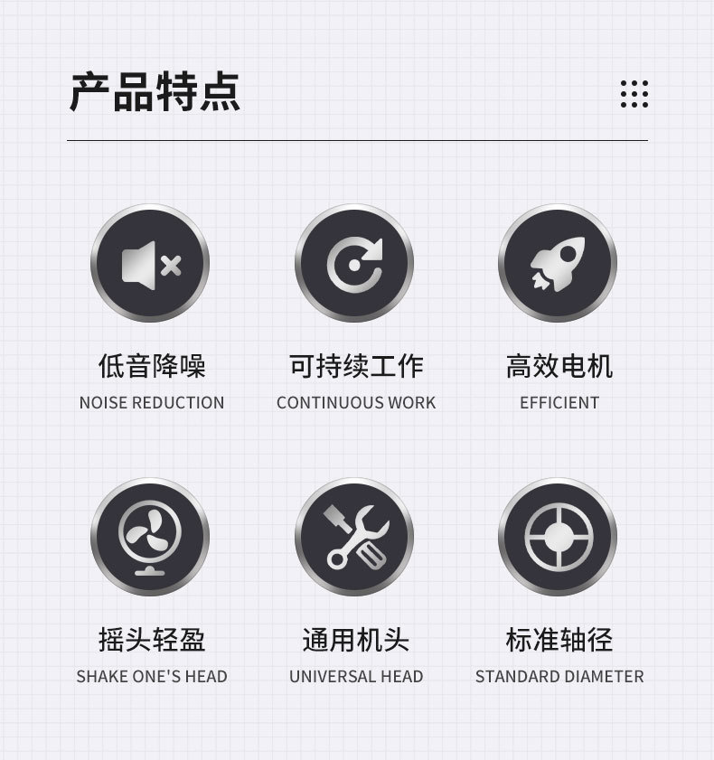 ![]() | Standard 750 motor [three-speed speed adjustment] [one-button shaking head model] | ¥52.0 / ≈ 628 ₽ | 845 | 5794958424135 | |