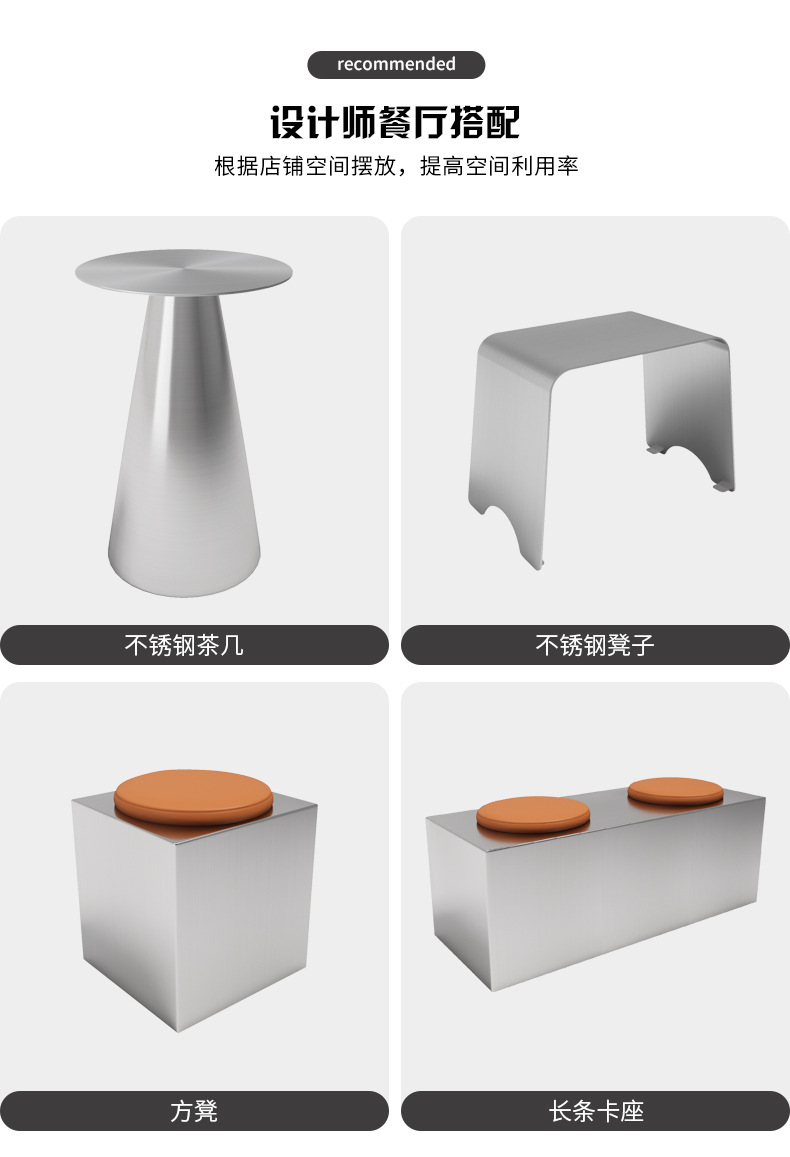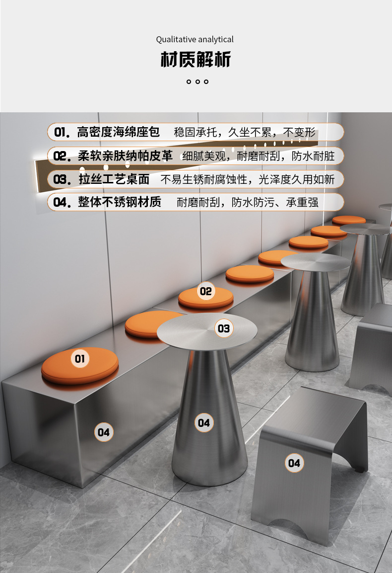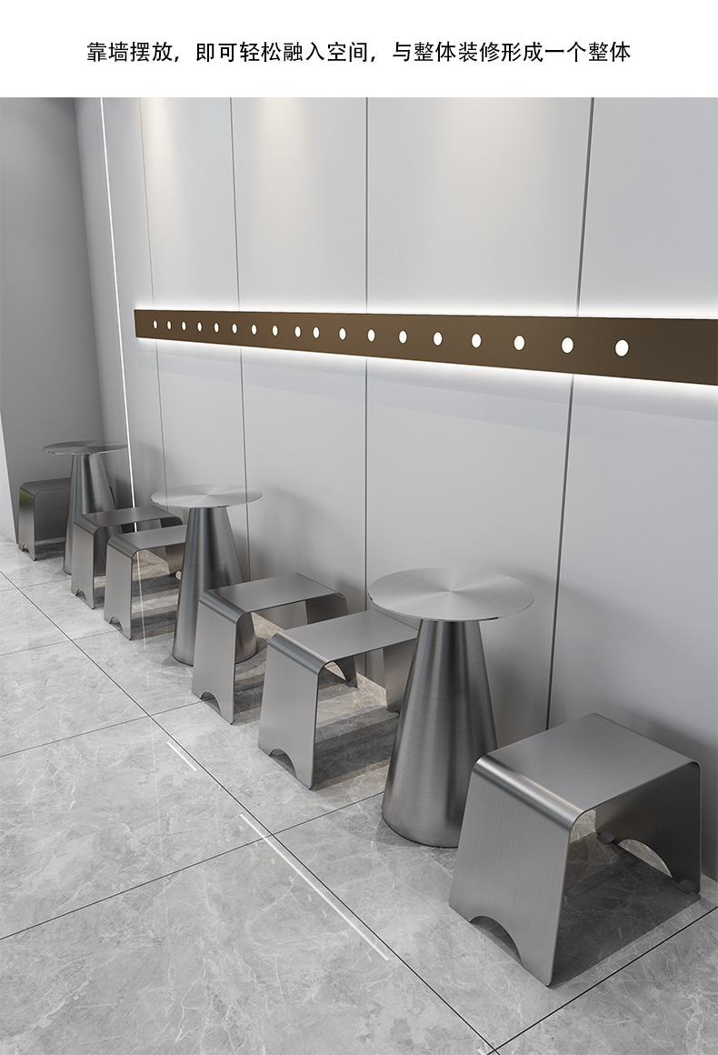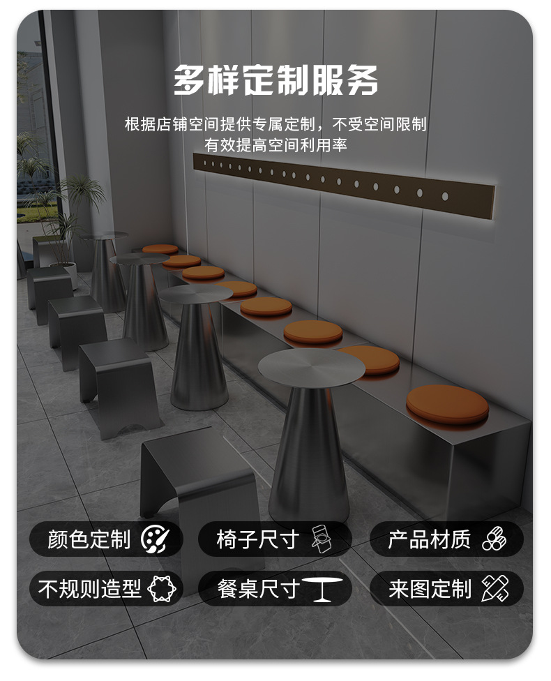 Стильный обеденный стол и стулья для чайного магазина, индустриальный стиль, простой круглый стол из нержавеющей стали, легкий люксовый барный прилавок, металлическое серебряное длинное место для сидения
