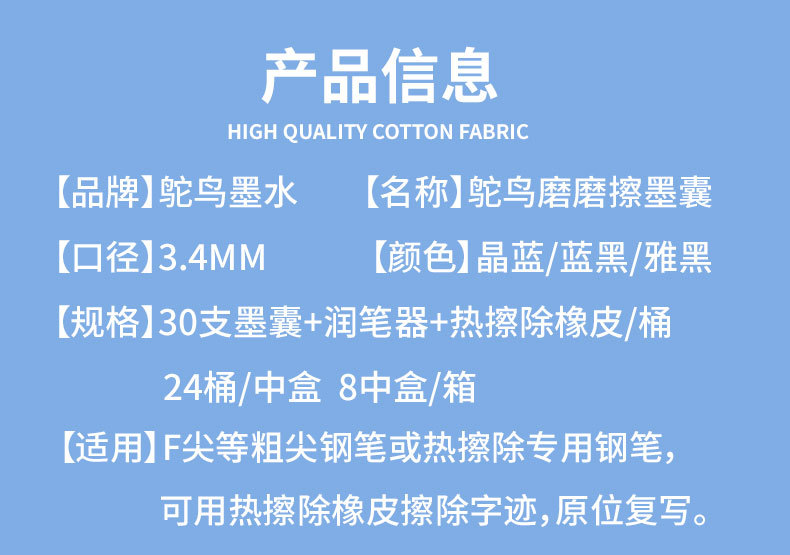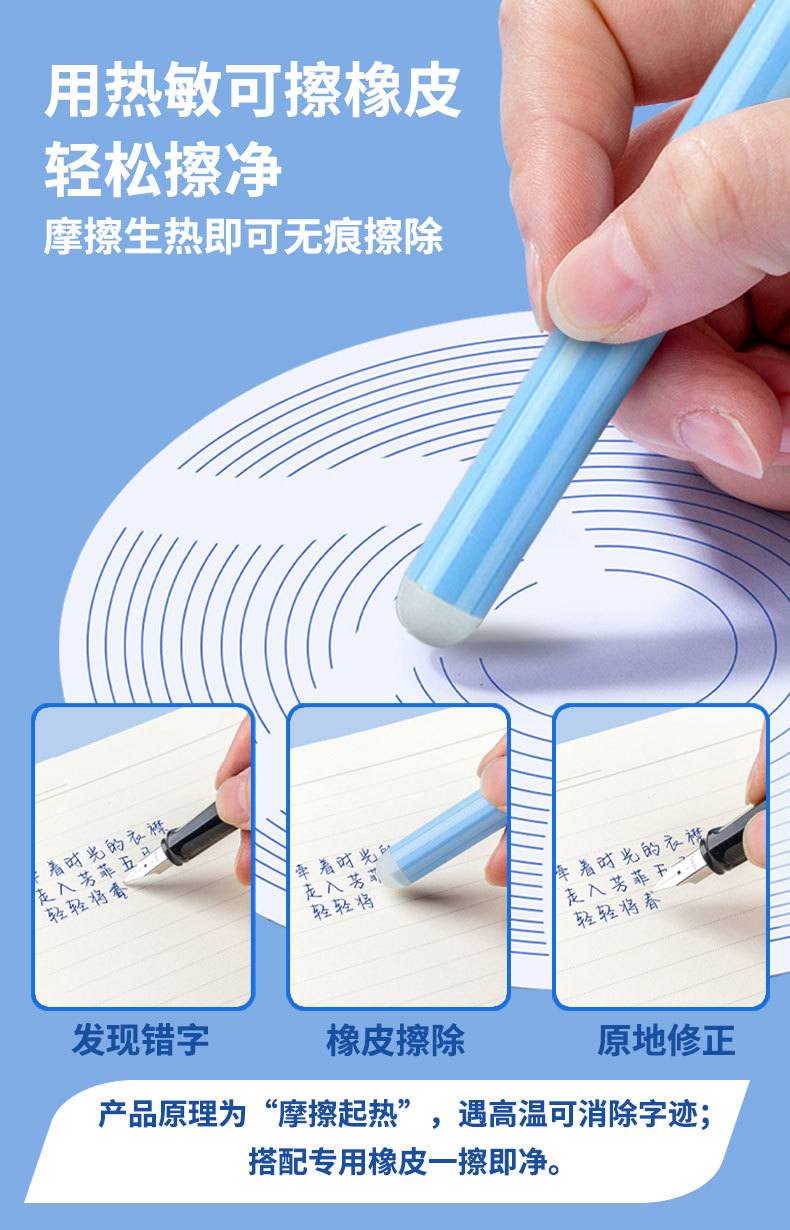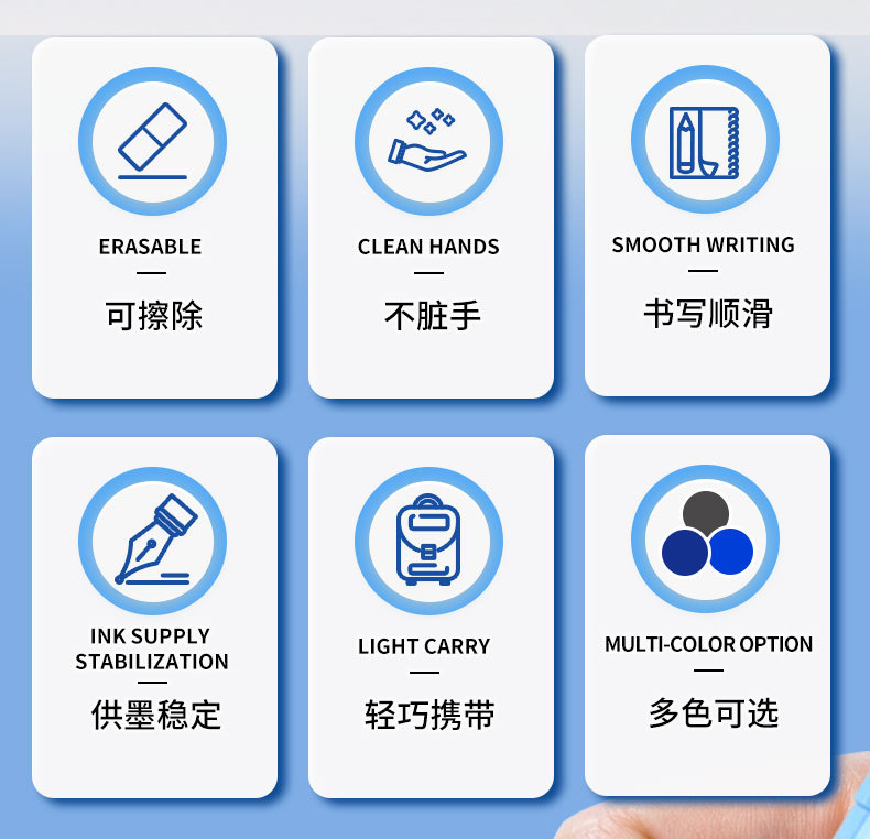📦 | Hot erasable crystal blue ink bags (30 pieces + pen moisturizer + eraser)/barrel | 720шт: ¥0.18, 5760шт: ¥0.17, 57600шт: ¥0.16 | 685239 | 5765031446493 | |