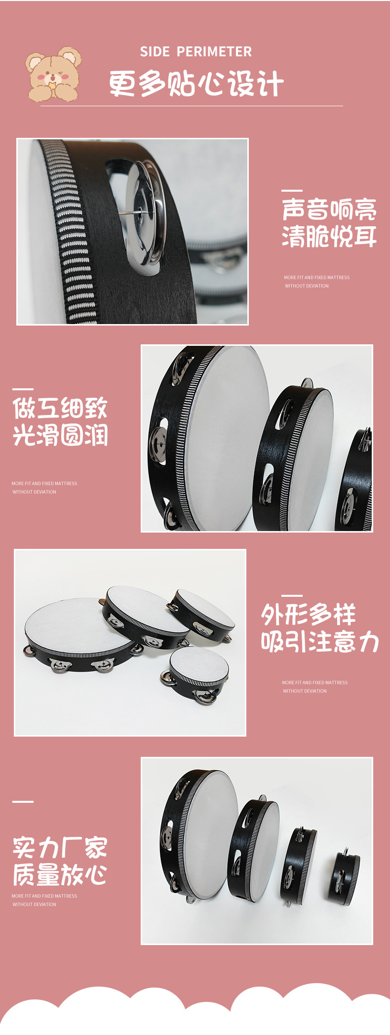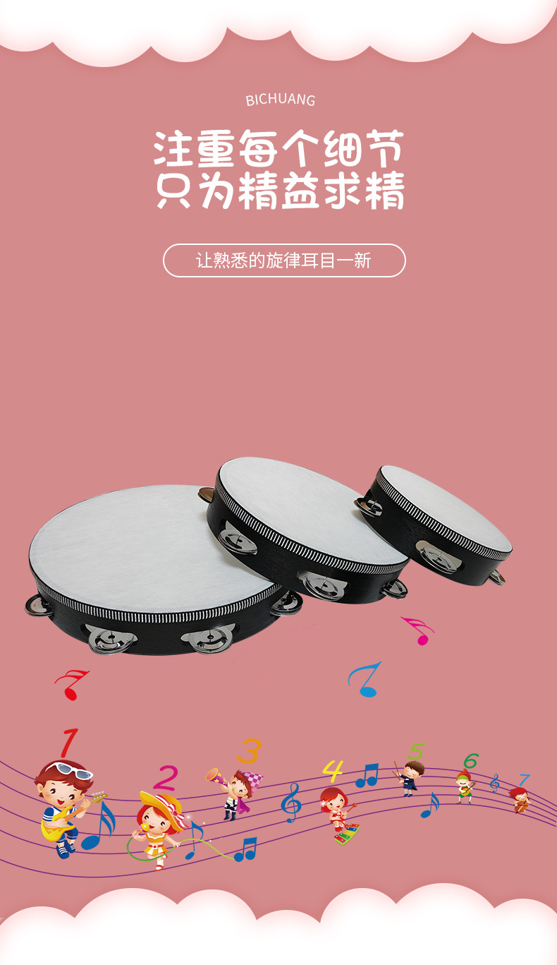 Ударный инструмент Орфа, одиночная рамка, бубен 4-10 дюймов, ручной барабан, инструмент для выступлений в детском саду