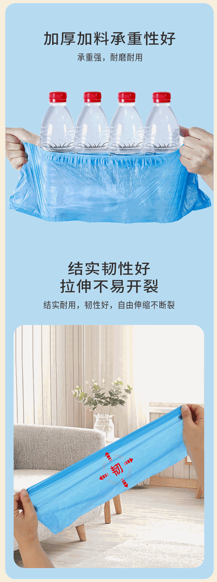 PE塑料 表面光滑,面料有硬度,防水耐磨性好。
