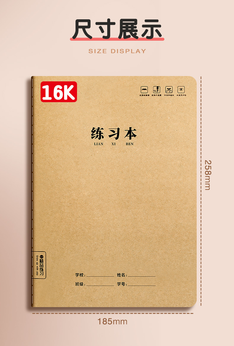 16K блокнот для шитья, блокнот для студентов, утолщенный составной текст, блокнот B5 для учеников младшей школы, блокнот из крафт-бумаги для английских домашних заданий