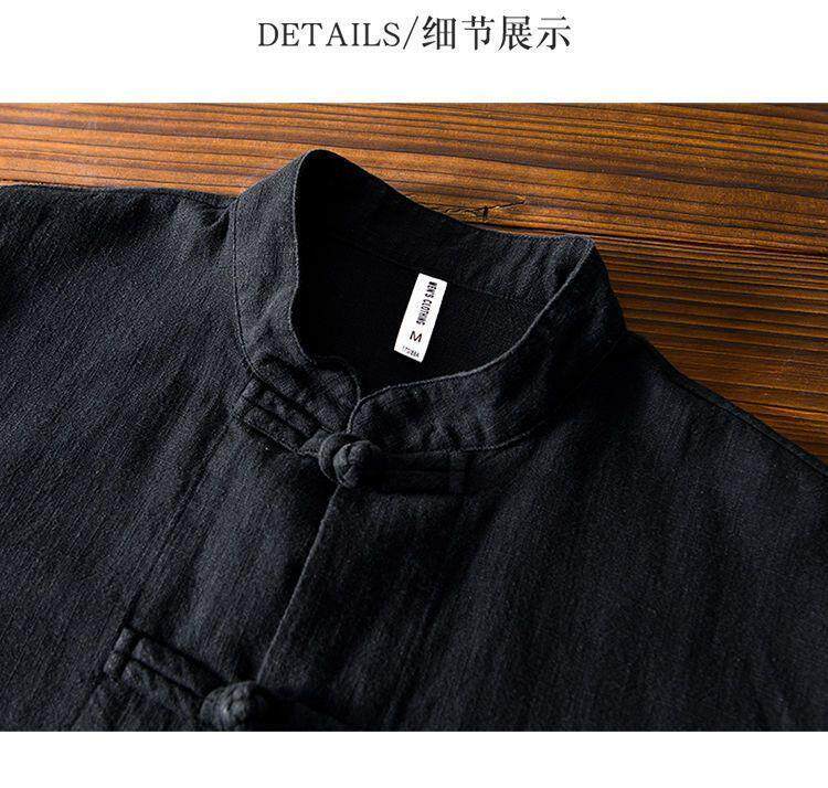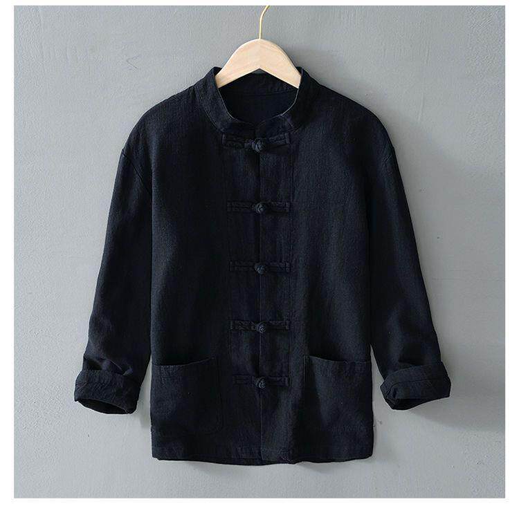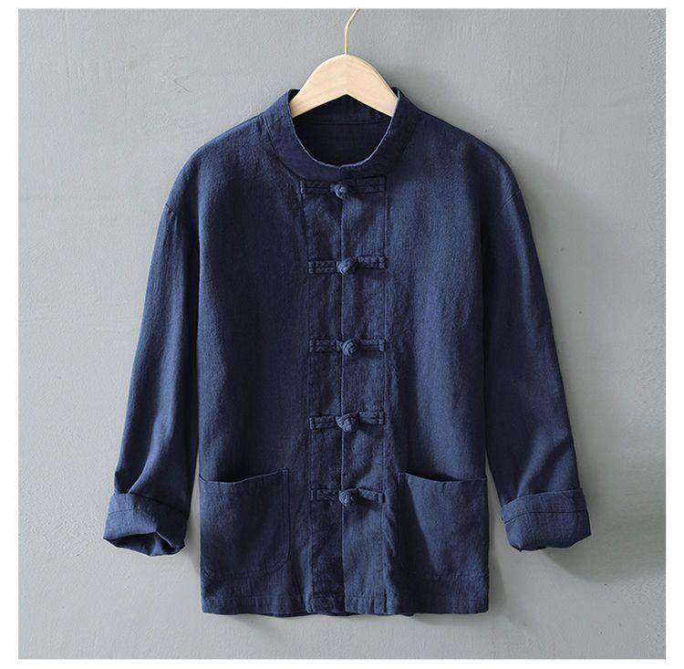 Классическая рубашка с воротником из хлопка и льна, длинный рукав, китайский стиль, винтажная пряжка, большой размер, свободная льняная рубашка