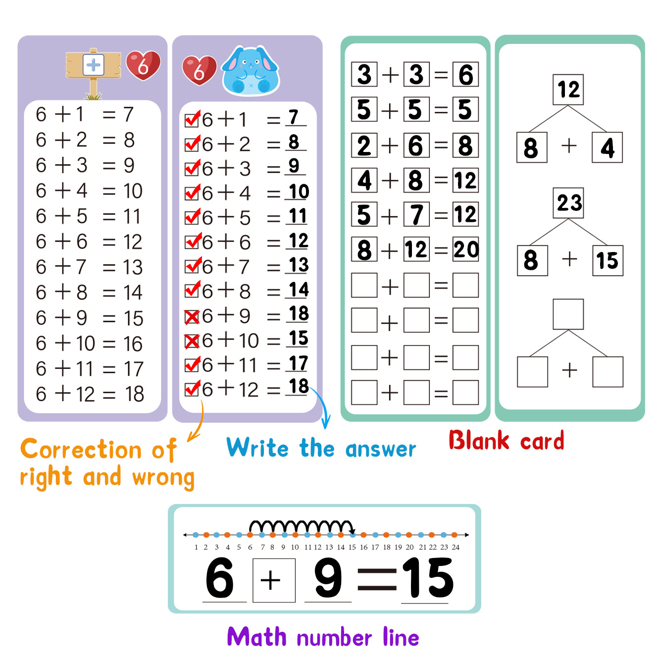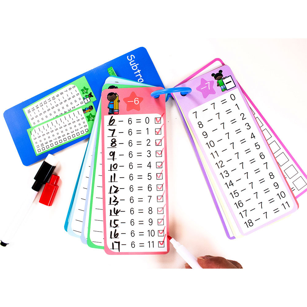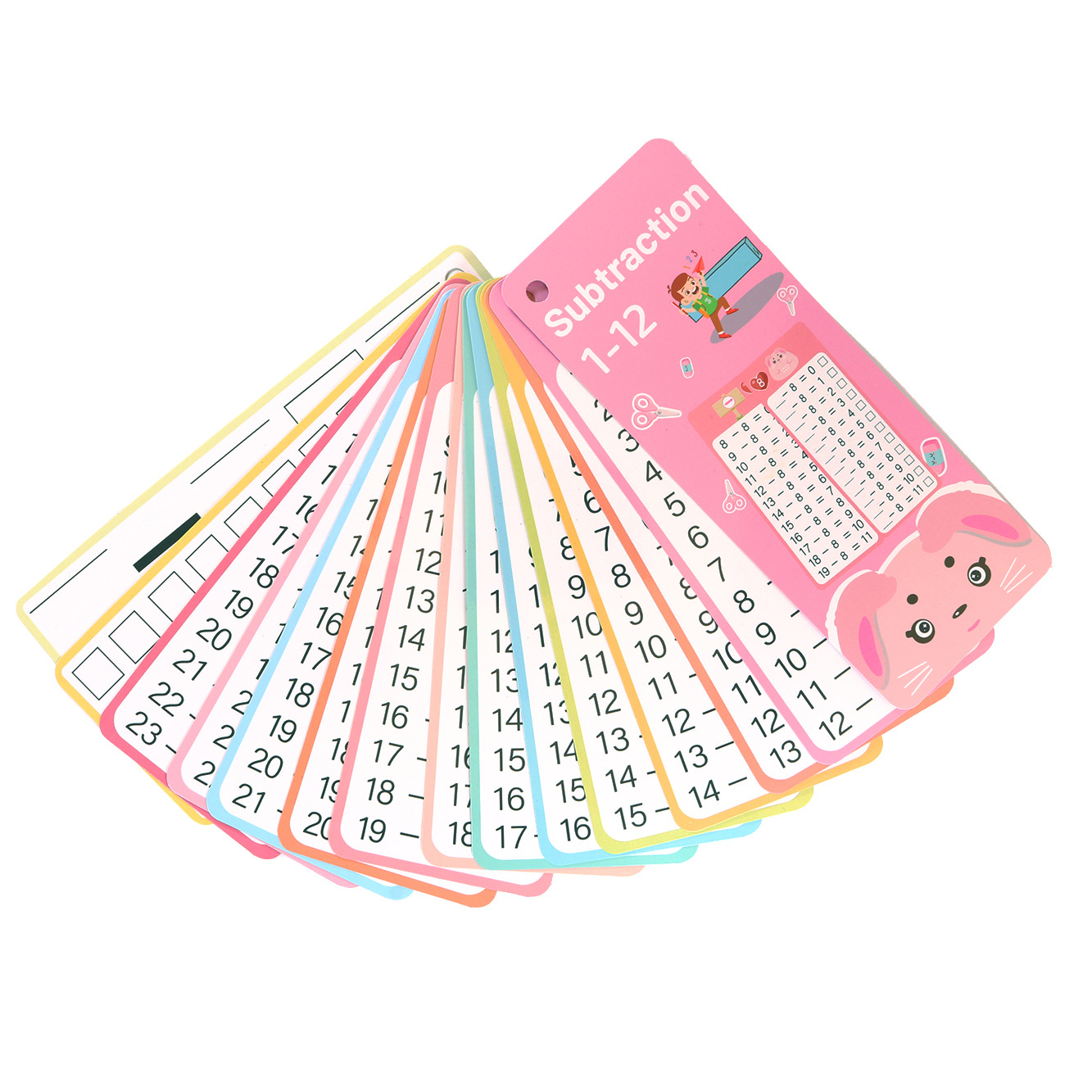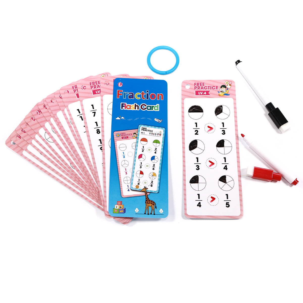 (除法加法减法)15张卡片+1支红色可擦笔+1支黑色可擦笔+1个收纳环入OPP袋子。