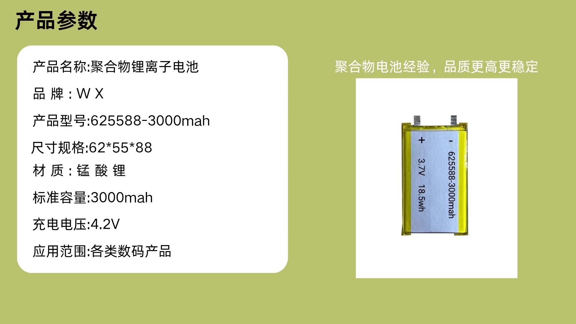 625588 Полимерный литиевый аккумулятор 3.7В Умный замок Модель 3000 мАч Портативный источник питания Большая емкость