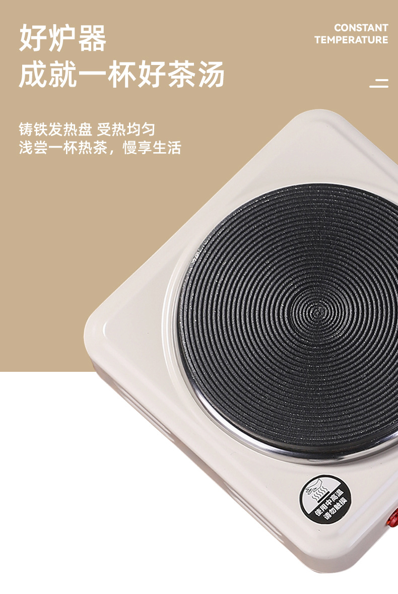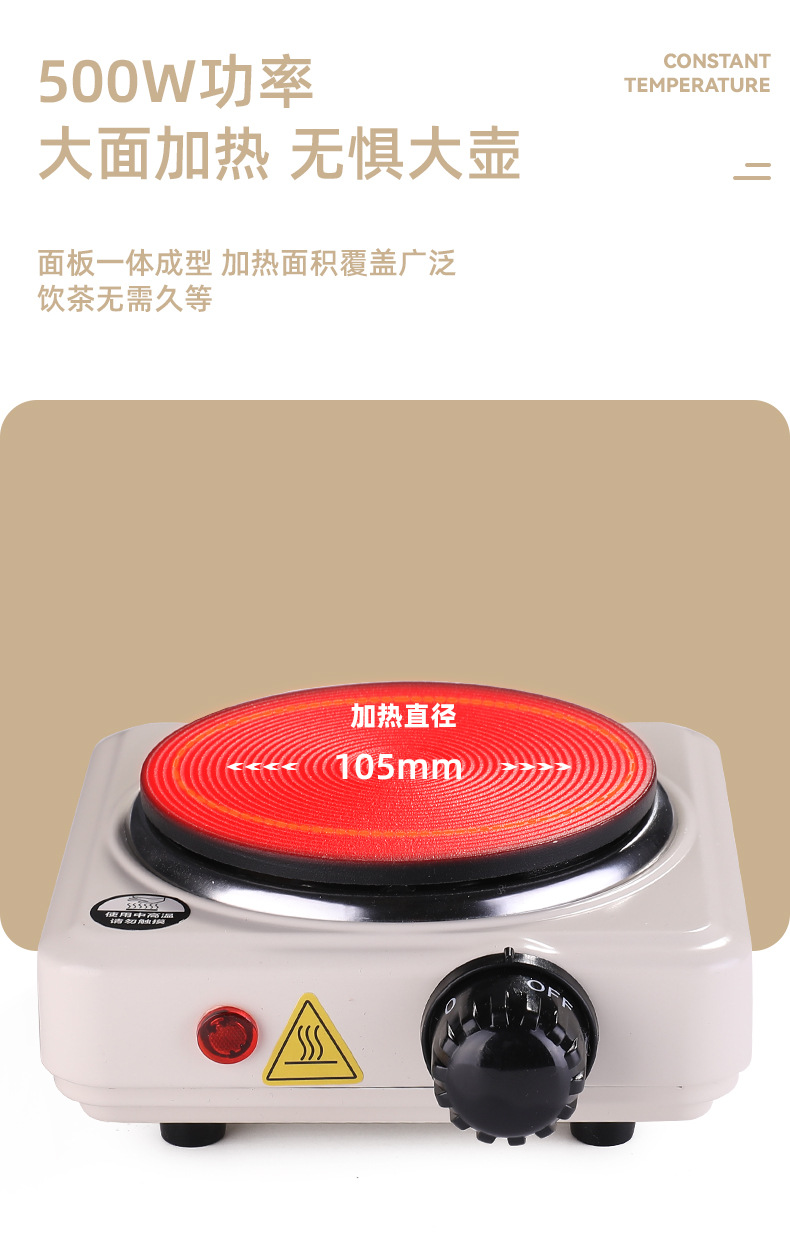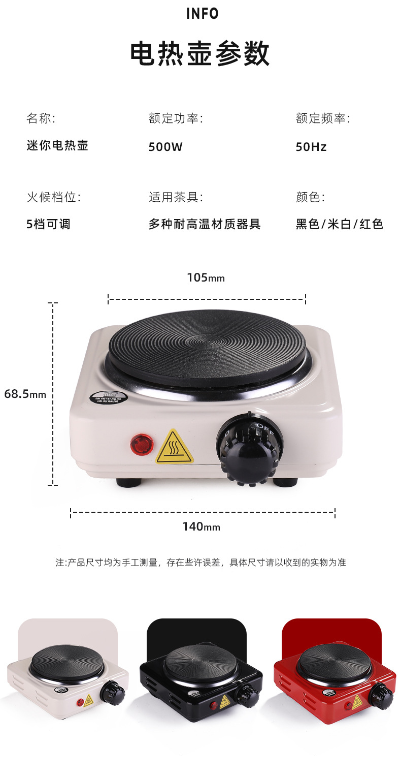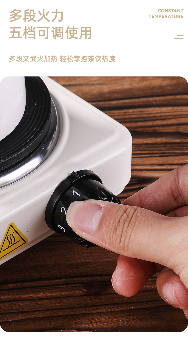 七天无理由不支持使用,使用过不支持退换,五百瓦小功率电热炉,铸铁盘发热无明火安全方便,五档调节火力,默认国内三叉头