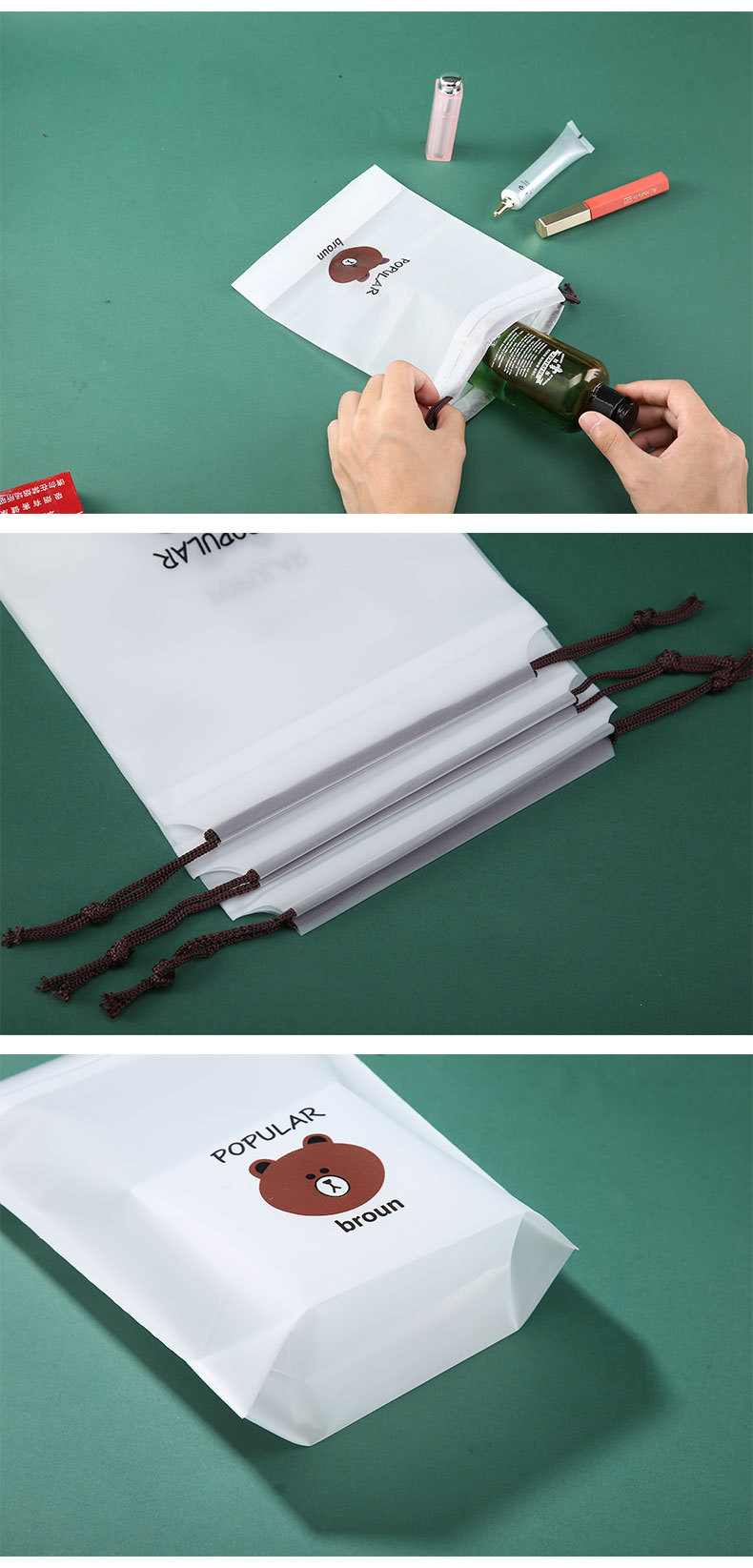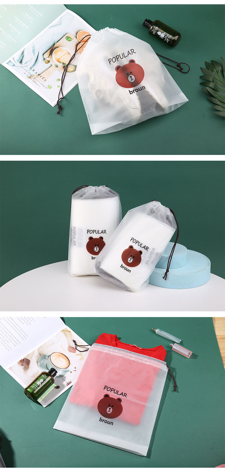 Сумка-узел с медведем, мультяшная, для одежды и обуви, пылезащитная, водонепроницаемая, с возможностью печати логотипа