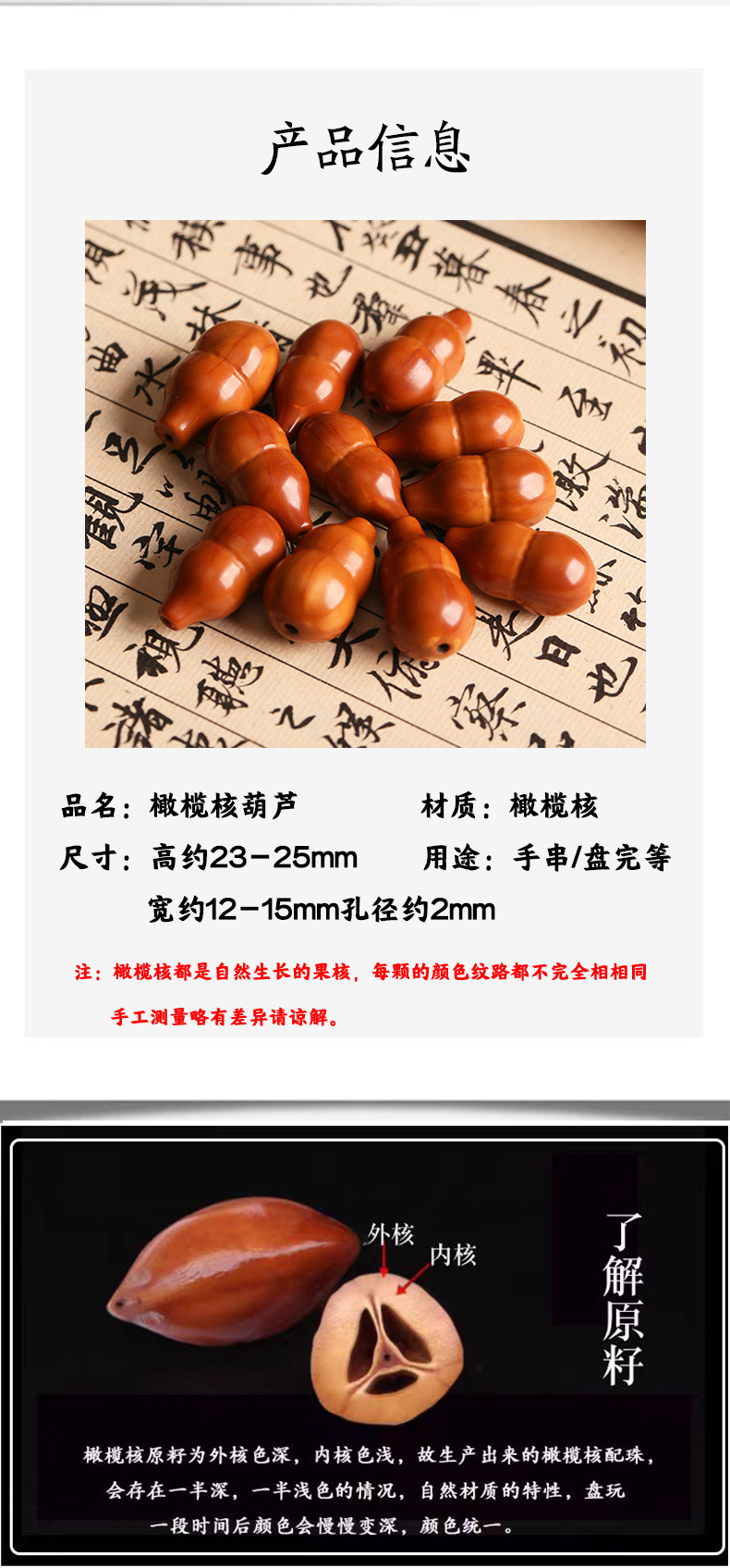 Браслет с резьбой из оливкового ядра, аксессуары для DIY, мужские и женские, гладкие бусины, подвеска из старого масла