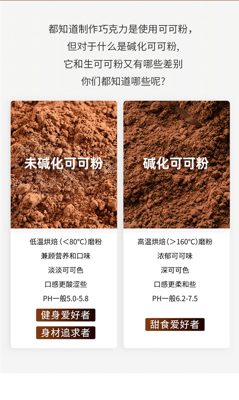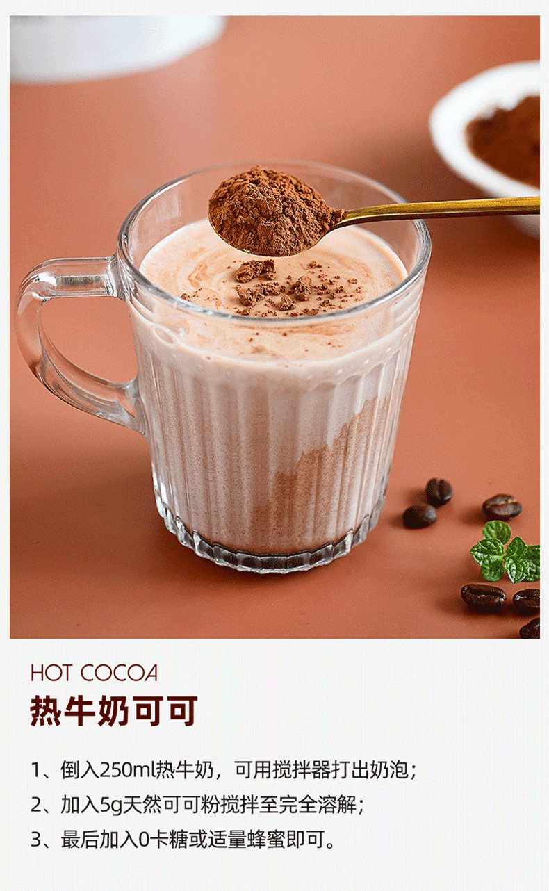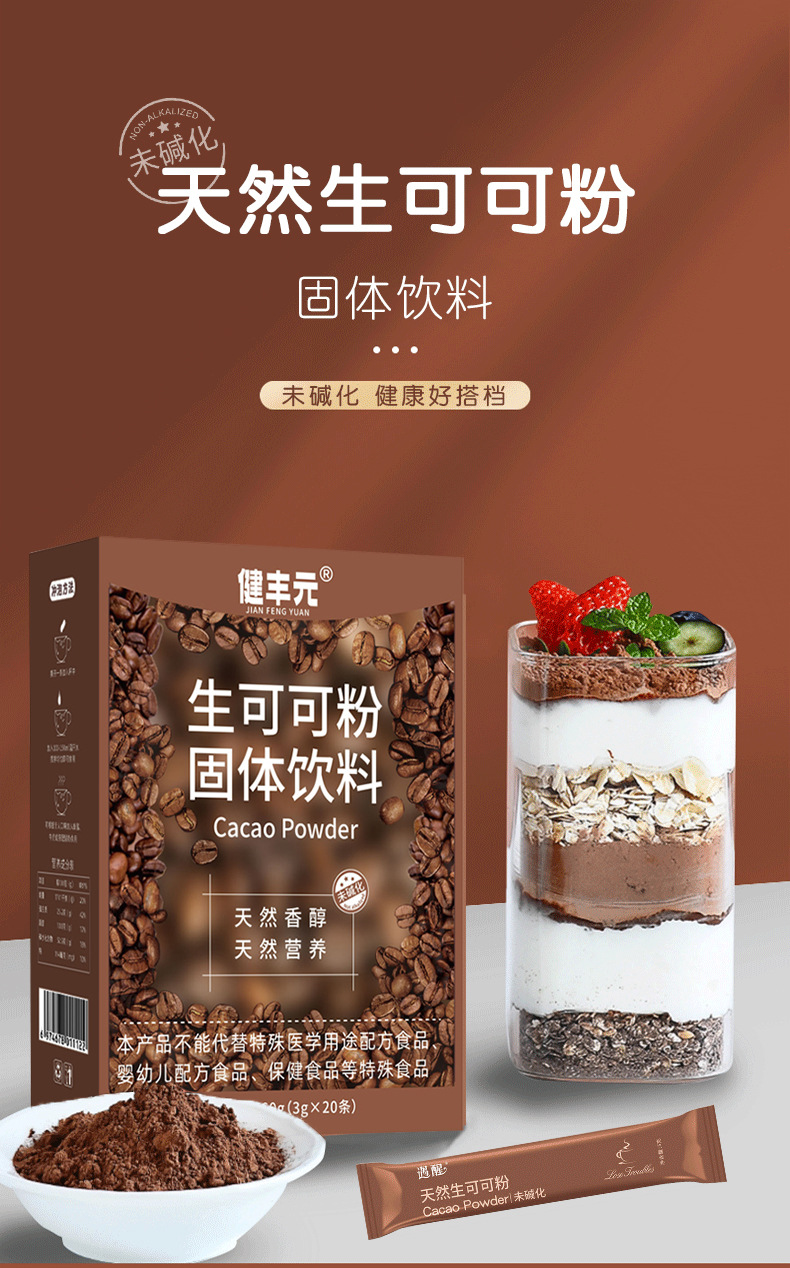 Сырой какао-порошок неалкализованный, мгновенный шоколад, натуральный, без сахара, 0 жира