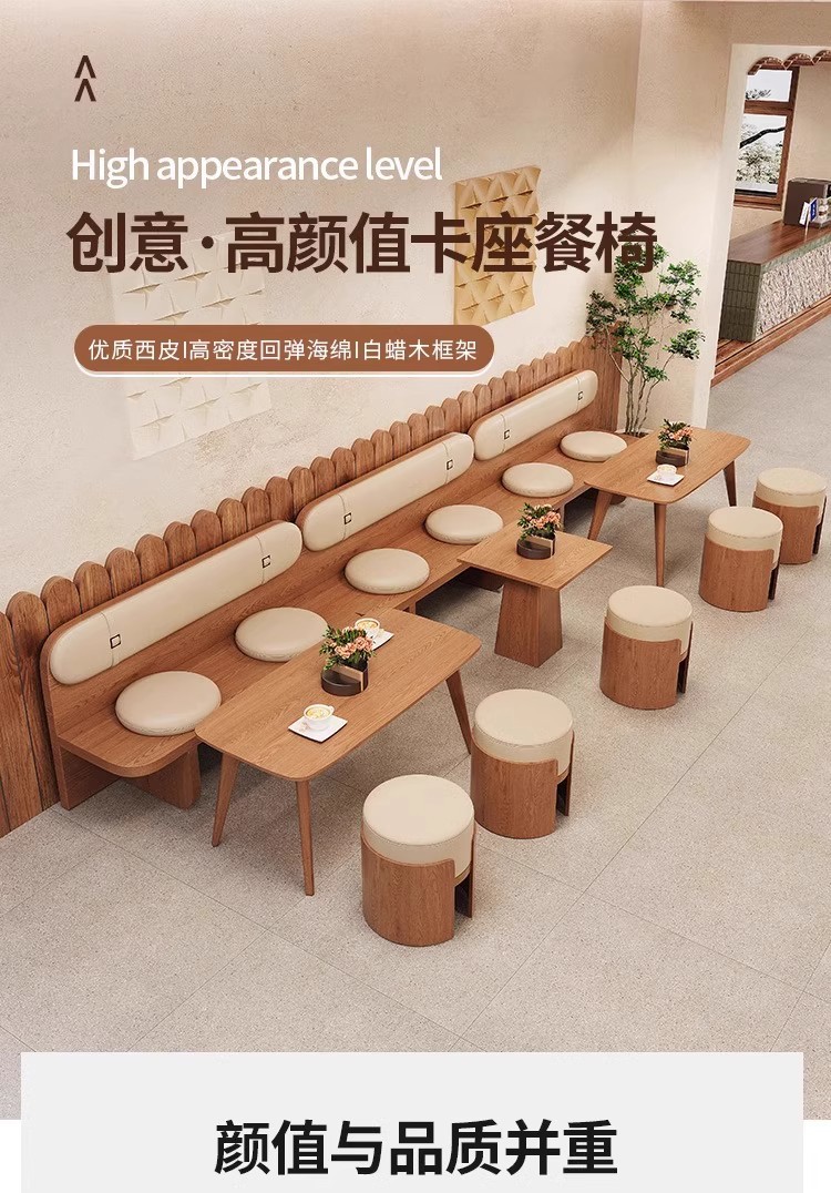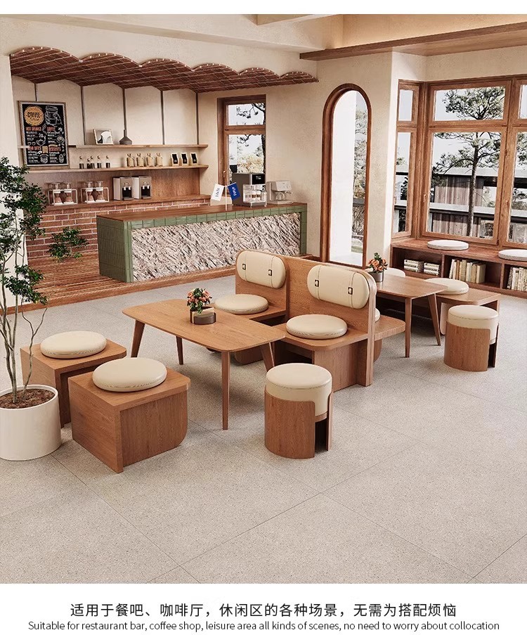 Комбинация стола и стульев для молочного чая, диван-карточка, обеденный стол для кафе, коммерческий бар, кейтеринг, чайный дом, стенка, сиденье из массива дерева