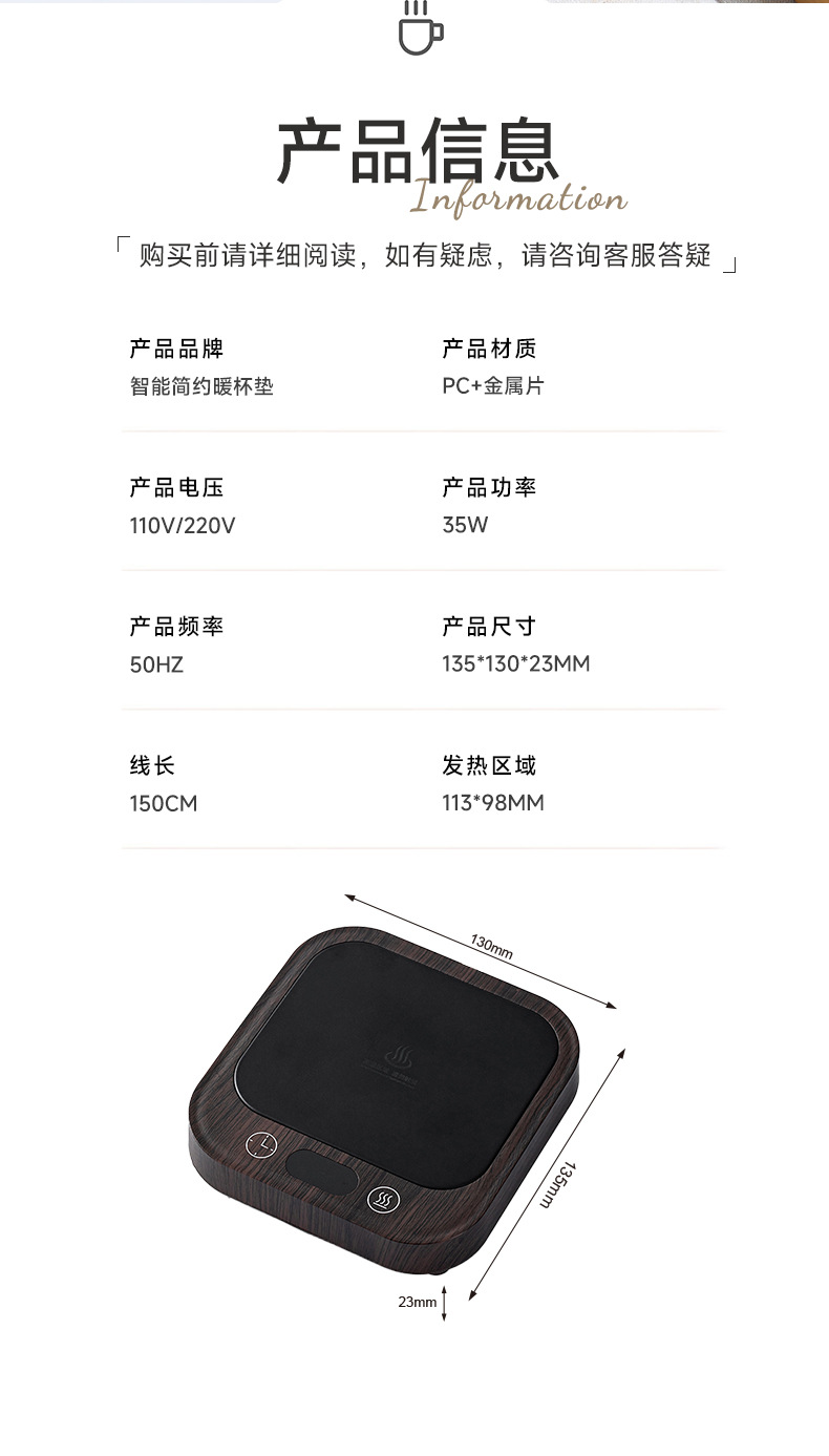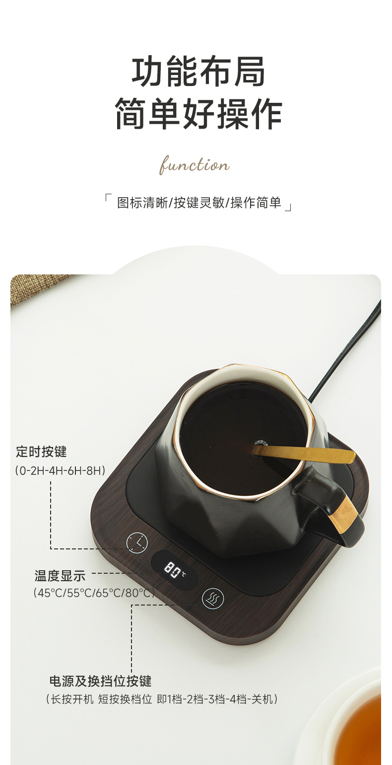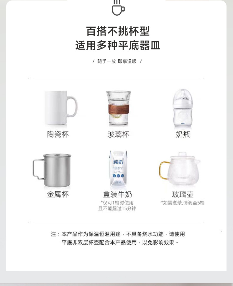 功能:恒温加热咖啡、牛奶、花茶、香薰、食物、热饮等等