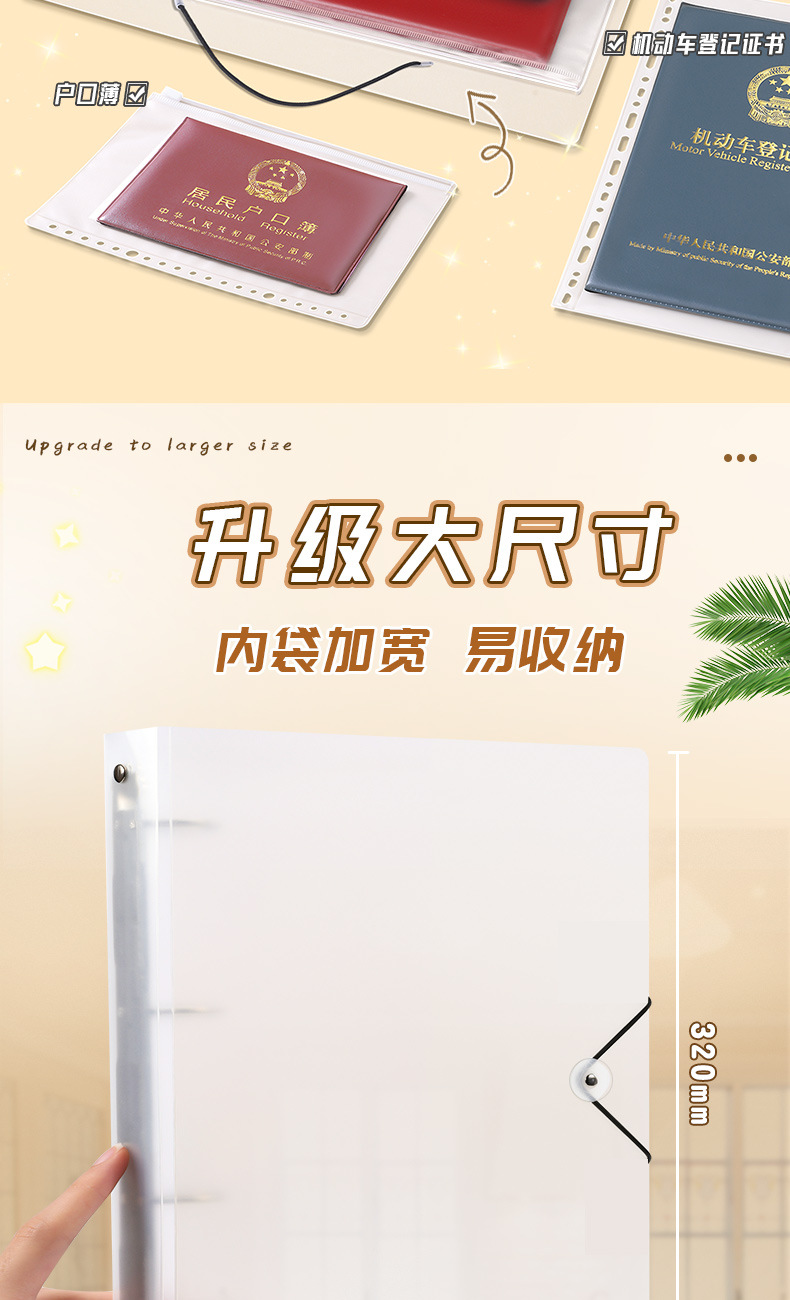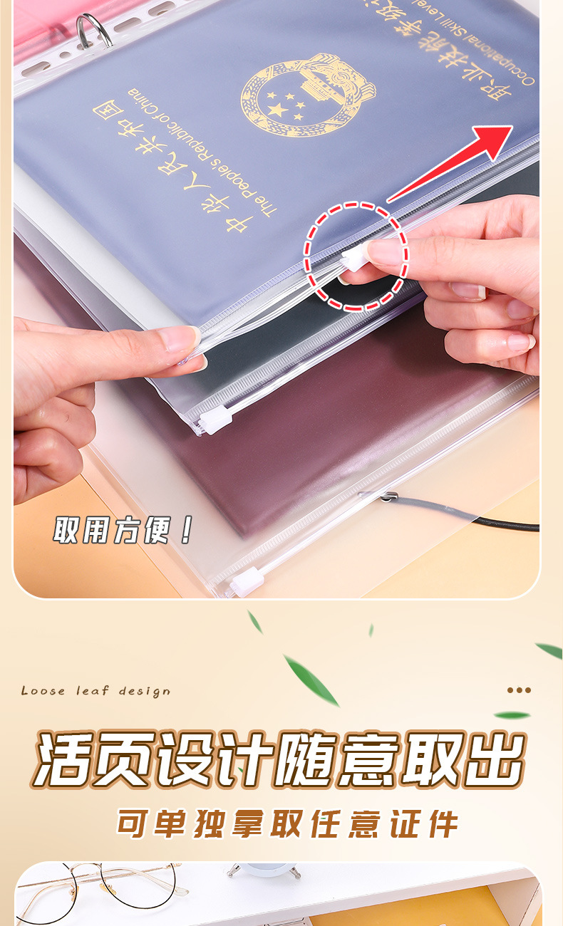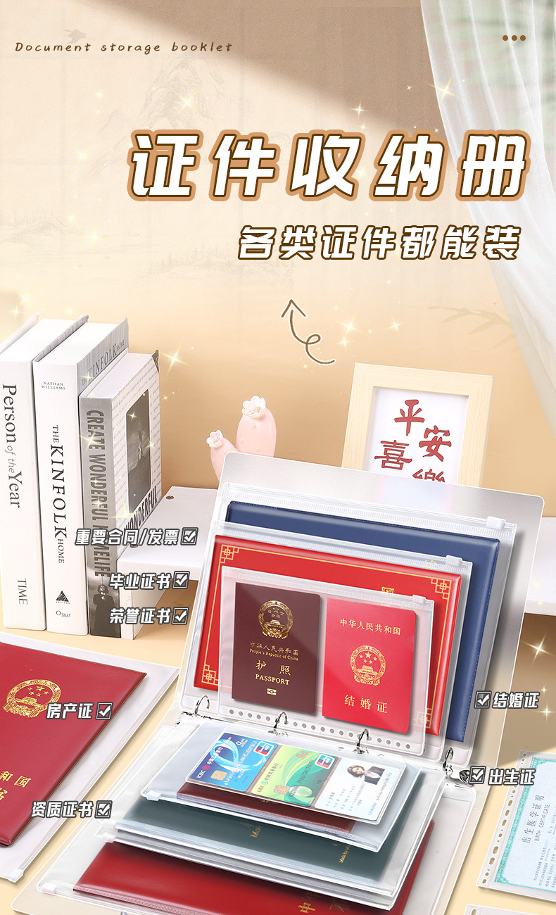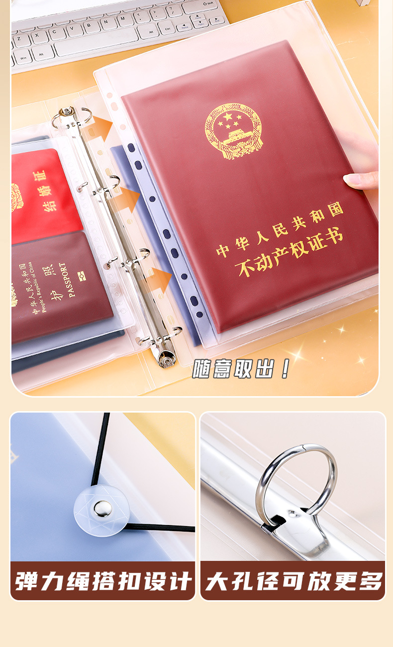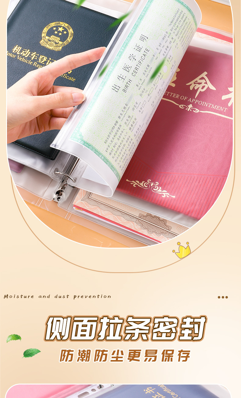 Сумка для хранения сертификатов для семьи Многофункциональная книга с кольцевым механизмом Для хранения сертификатов и счетов Водонепроницаемая папка