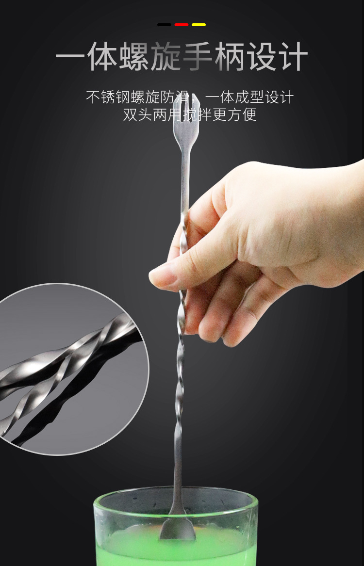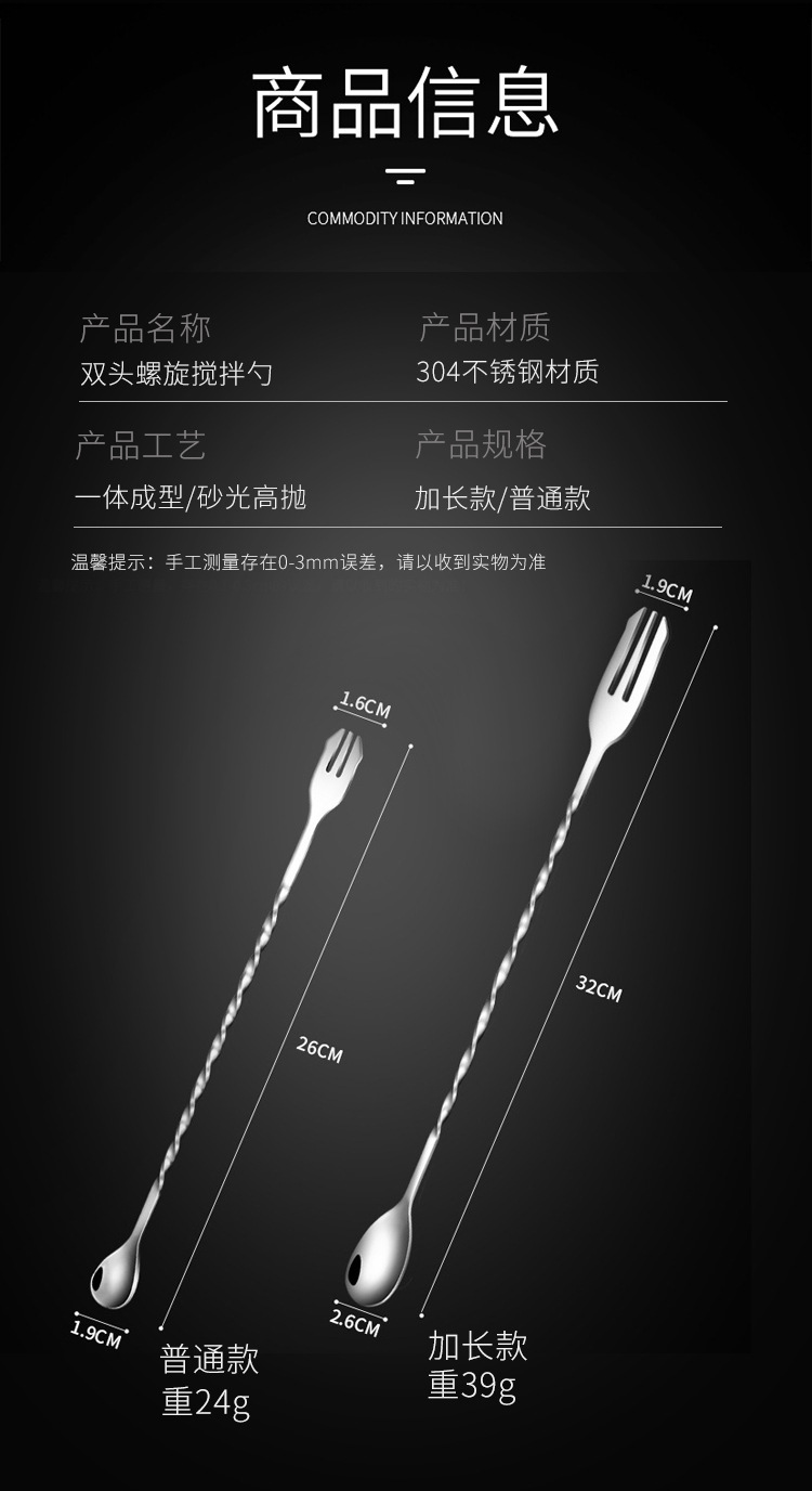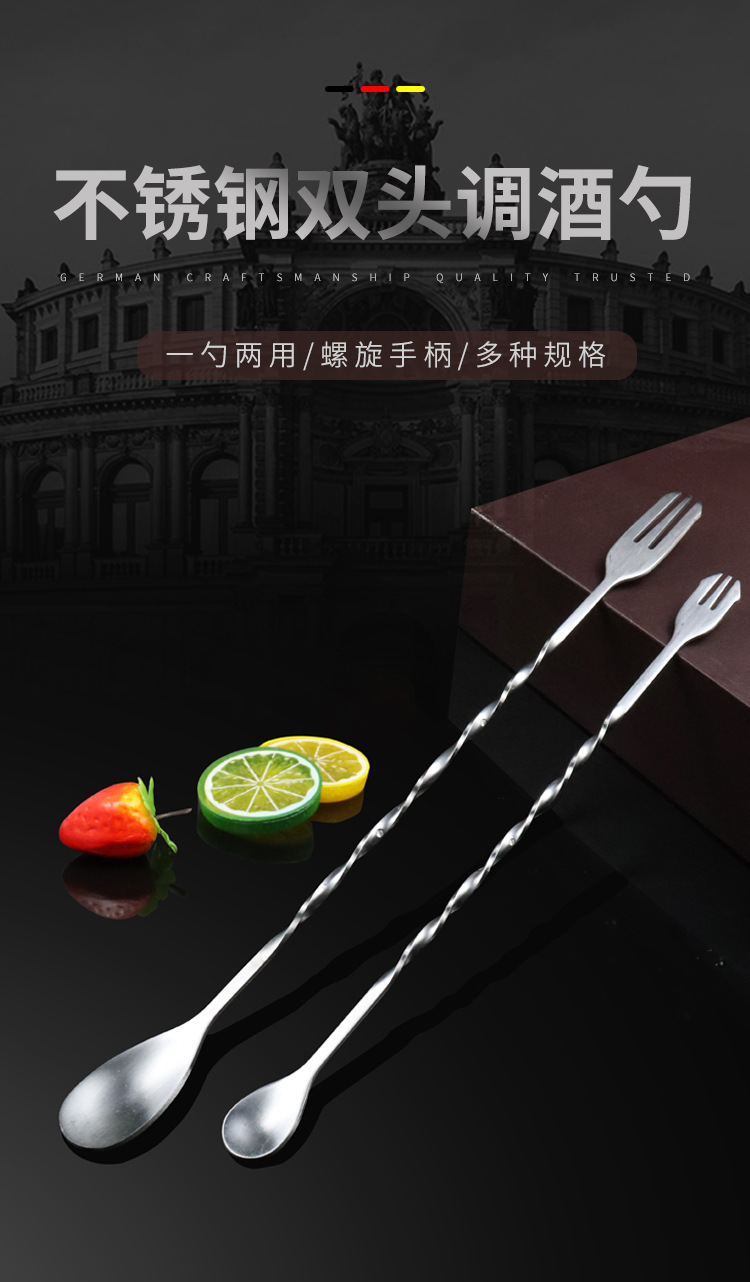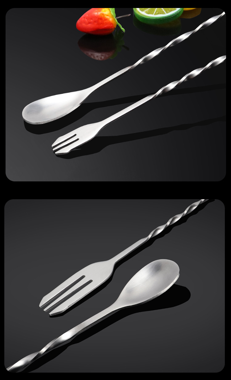 Ложка-бар с двойной головкой из нержавеющей стали 304, длинная ручка, смешивание, коктейльная ложка, ложка для молочного чая