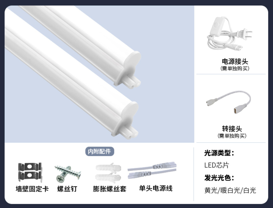 ![]() | 0.3m 4w t5 all plastic | Variable light [a lamp three color 3000K-4000K-6500K]] | ¥15.0 / ≈ 181 ₽ | 1000 | 5925471491948 | |
