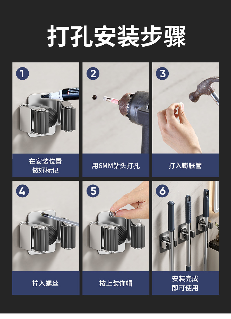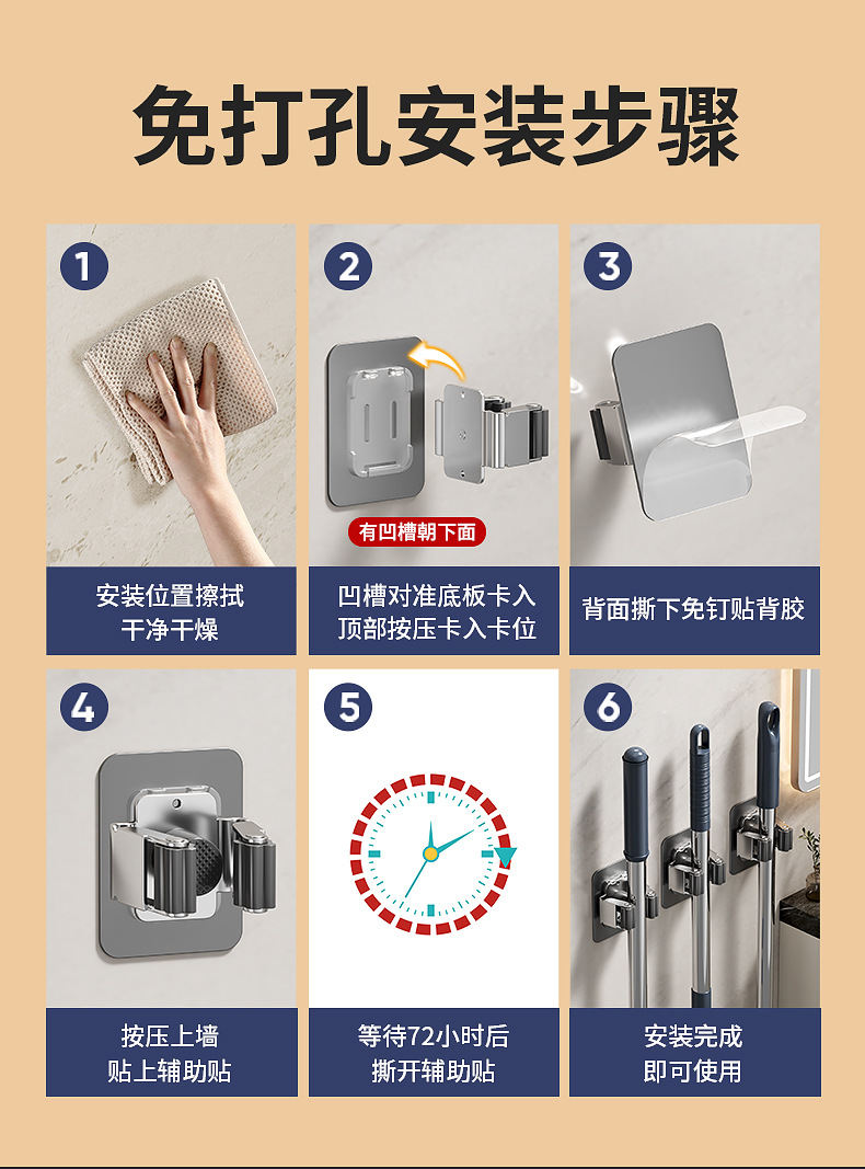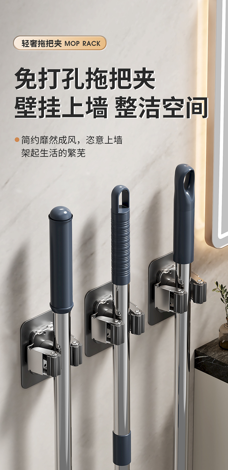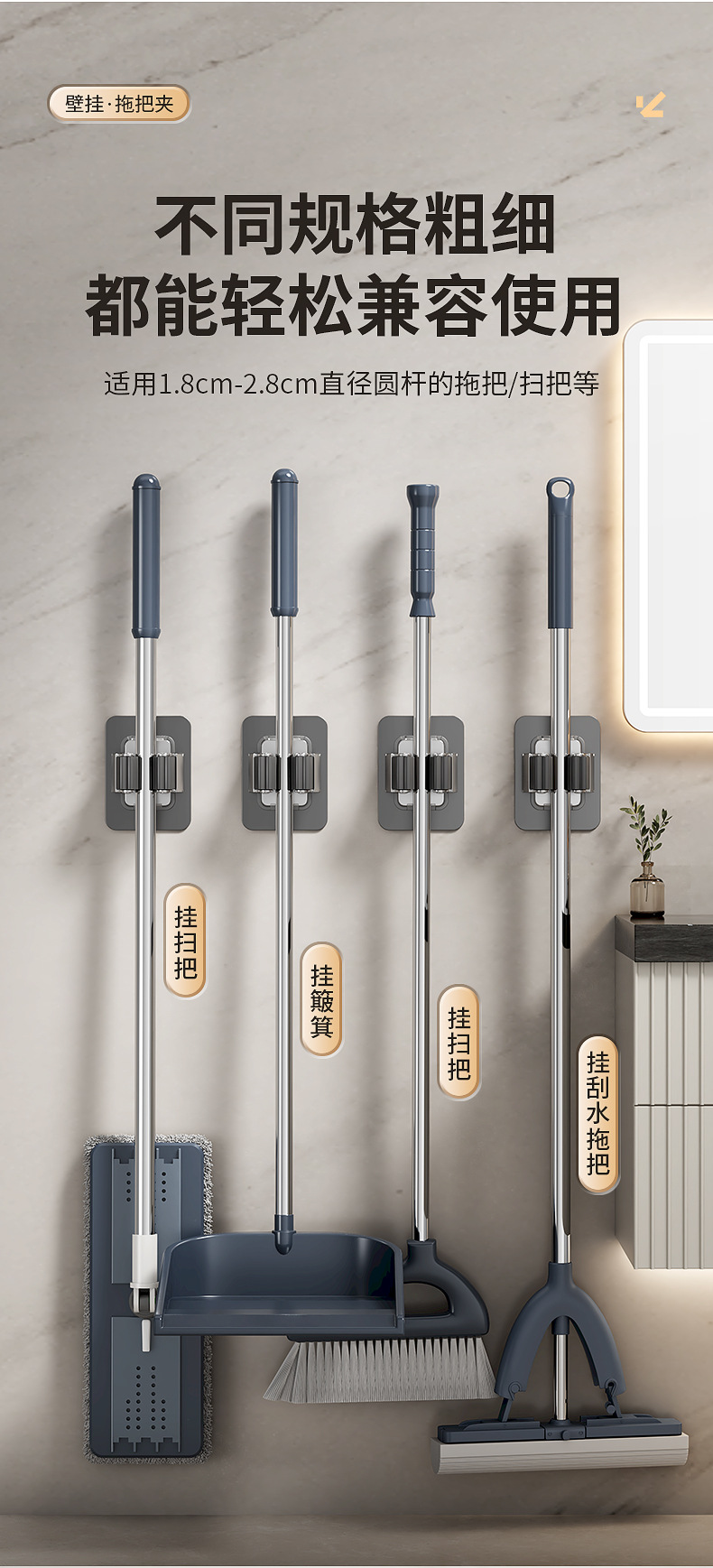 Стеллаж для швабры, без сверления, клипса для швабры, артефакт для ванной, мощное настенное хранилище