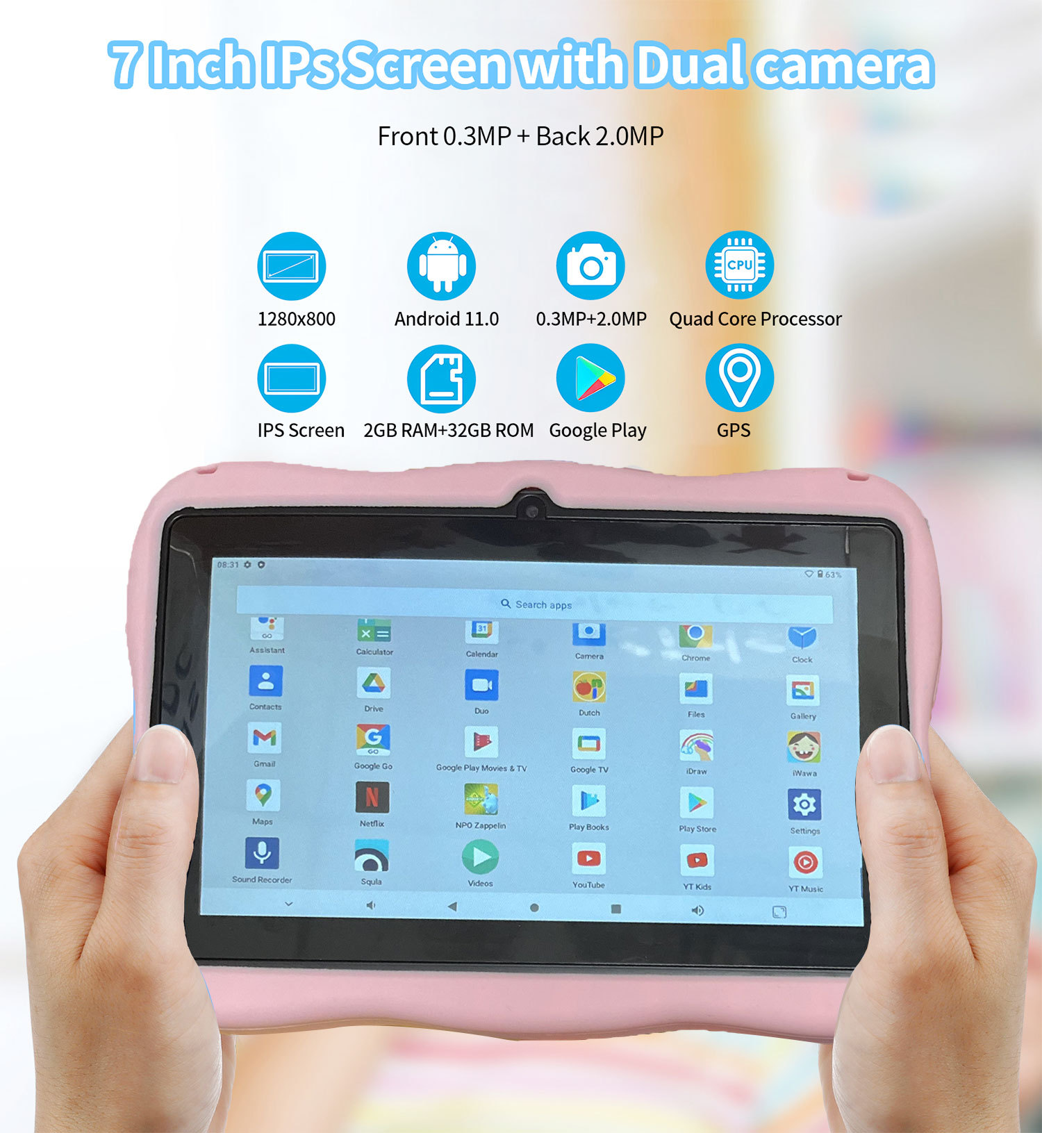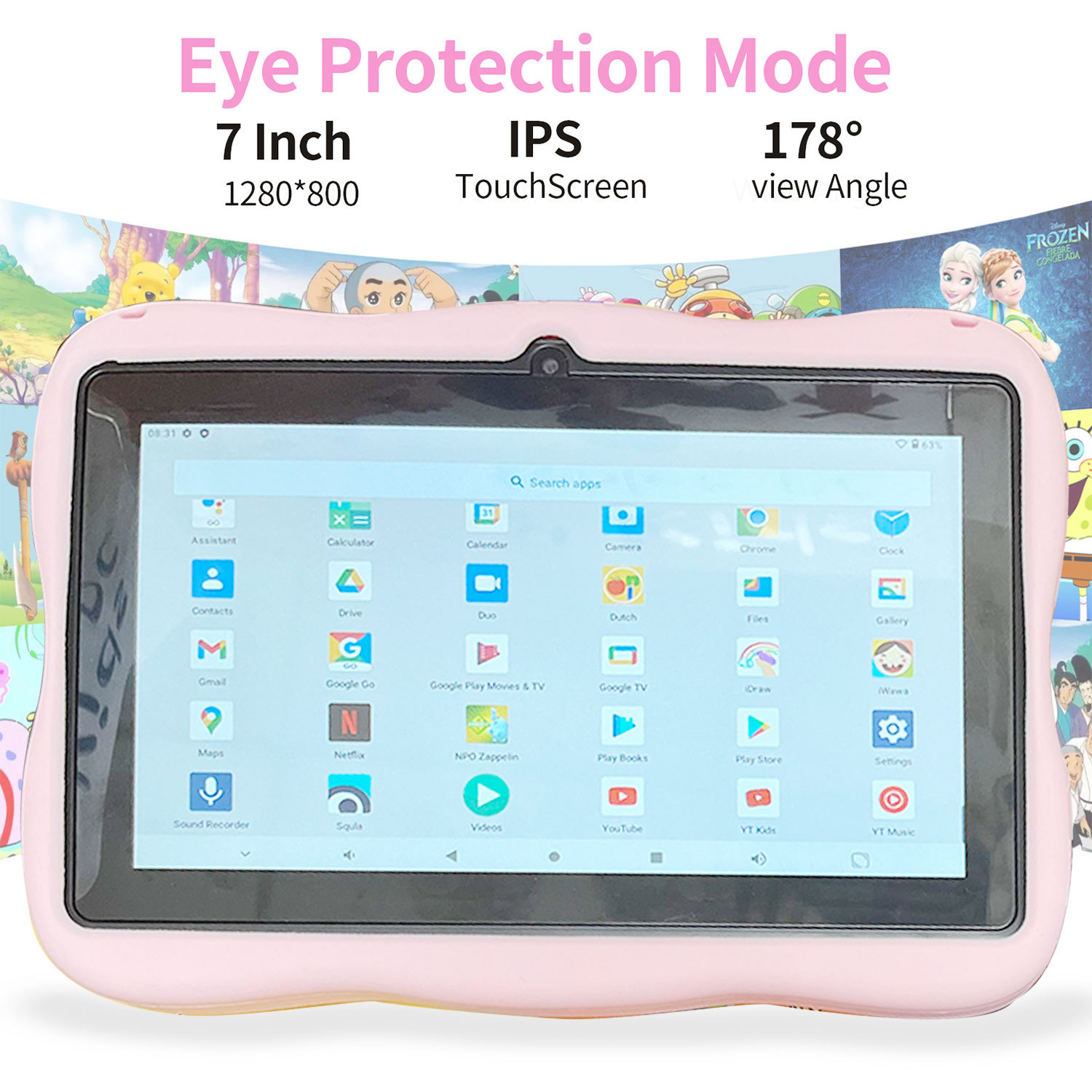 Android 7-дюймовый детский планшет с защитным чехлом мультяшный