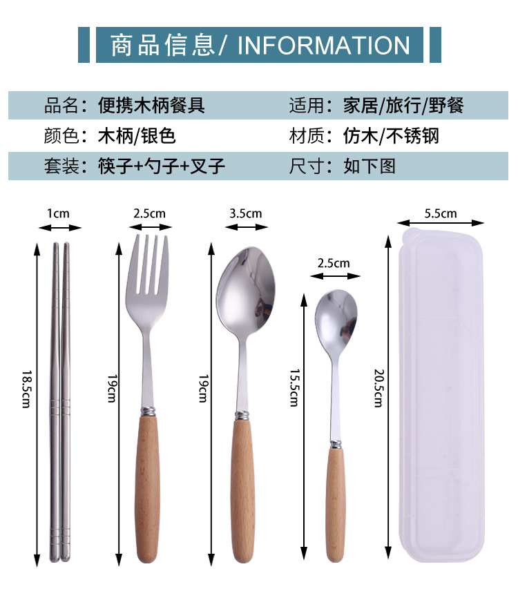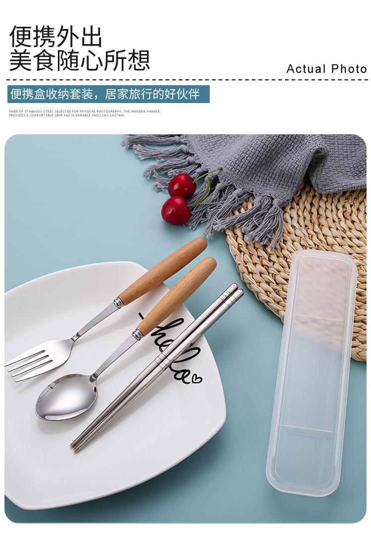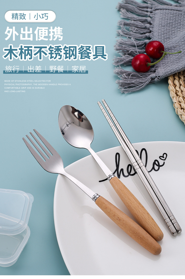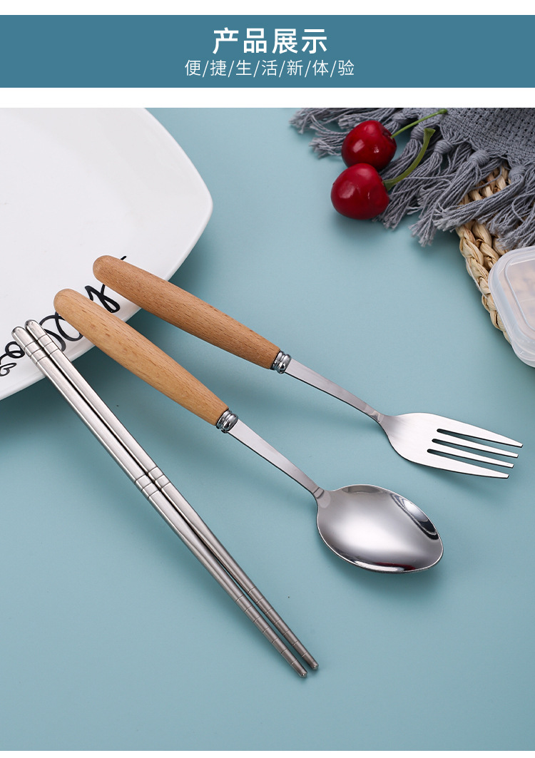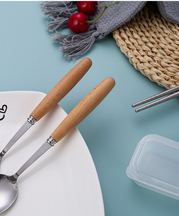 Набор столовых приборов с ручкой из бука, ложка, вилка, палочки для еды, три предмета, для студентов, на открытом воздухе, подарочная коробка, оптовая продажа