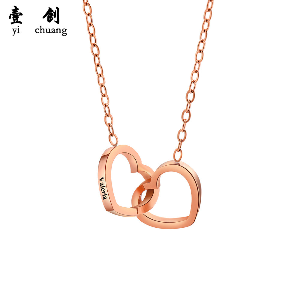 Ожерелье из нержавеющей стали с двойным сердцем гравировка сердце европейская и американская мода простой подарок