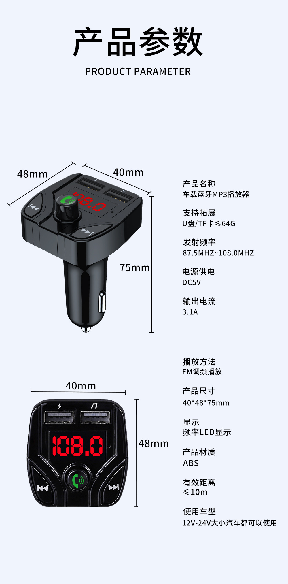 Режим питания Cigarette lighter car MP3