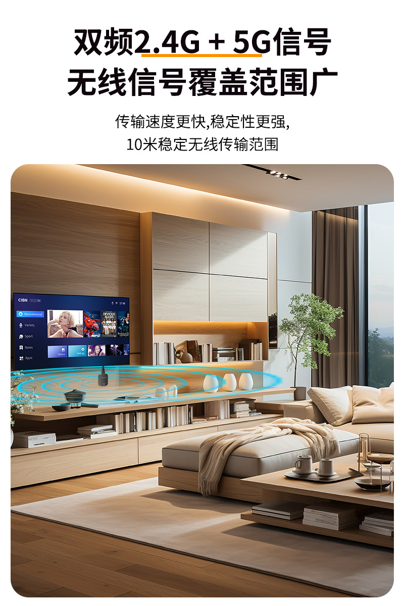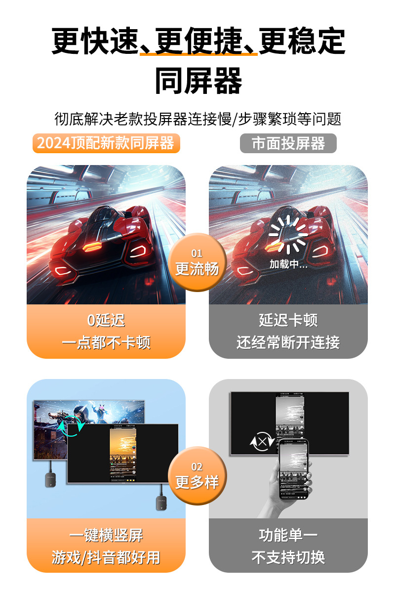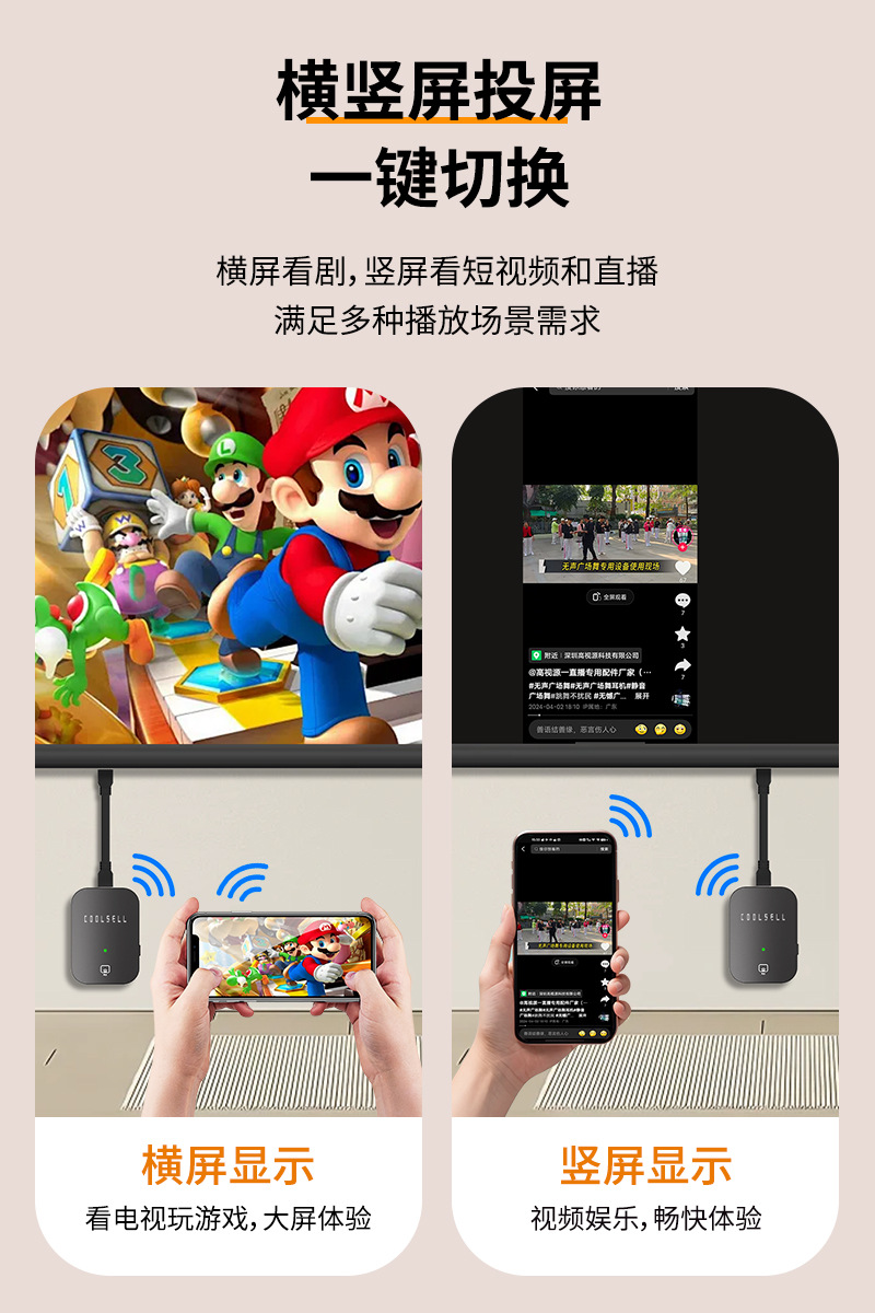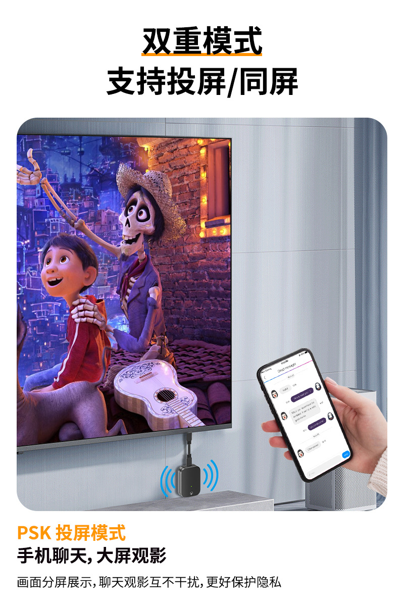Беспроводное устройство для зеркалирования экрана, подходит для телефонов и компьютеров Apple и Android, поддерживает живое сопровождение звуковой карты, надписи, проекцию в горизонтальном и вертикальном режиме