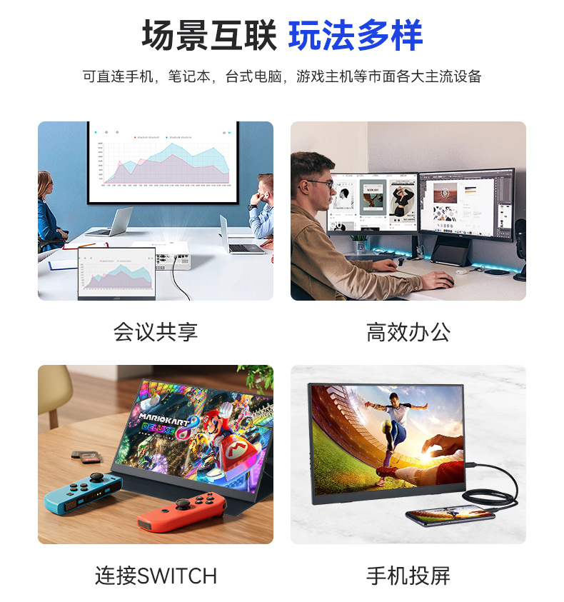 Портативный дисплей 16 "4K HD для мобильного телефона компьютера Switch/PS5/Xbox
