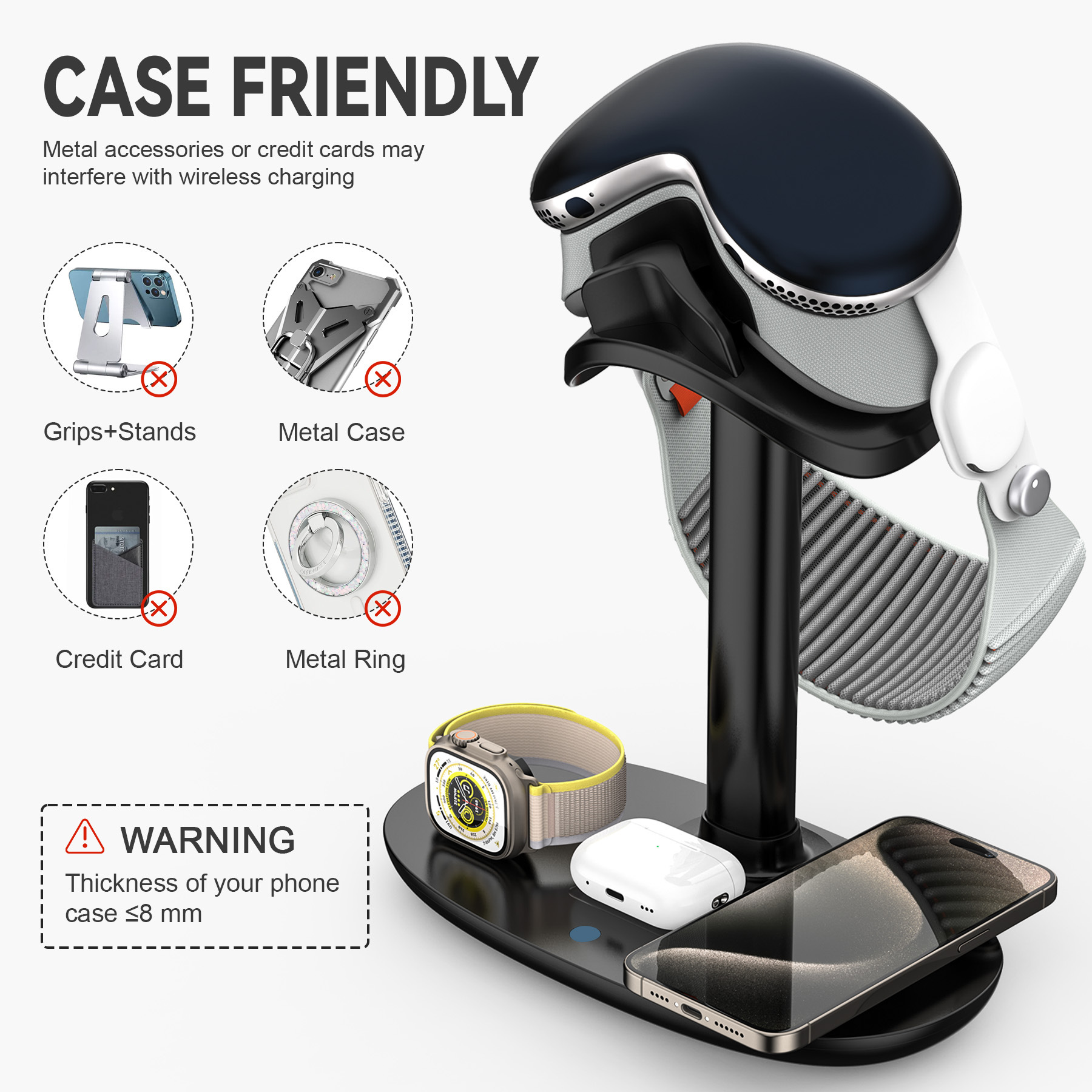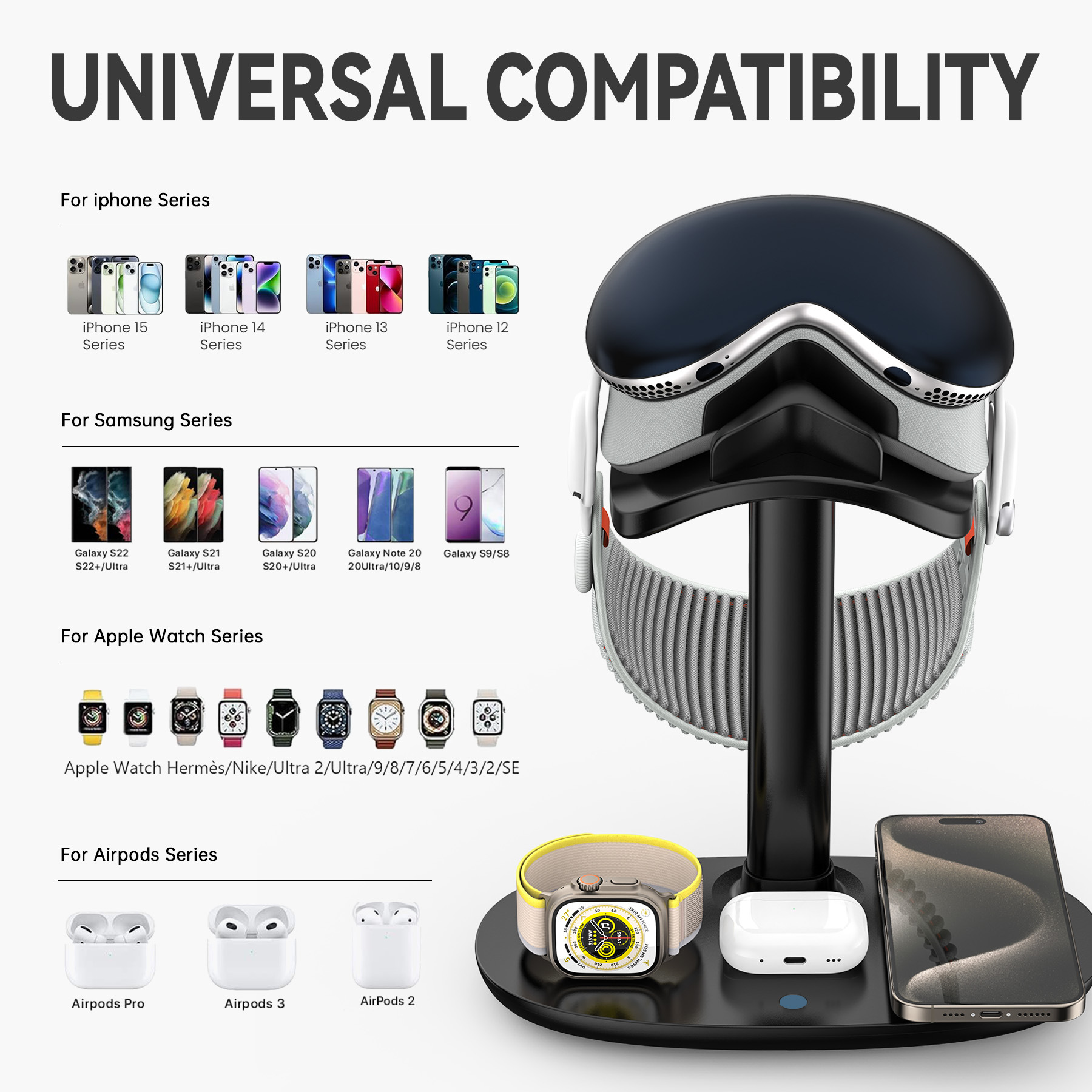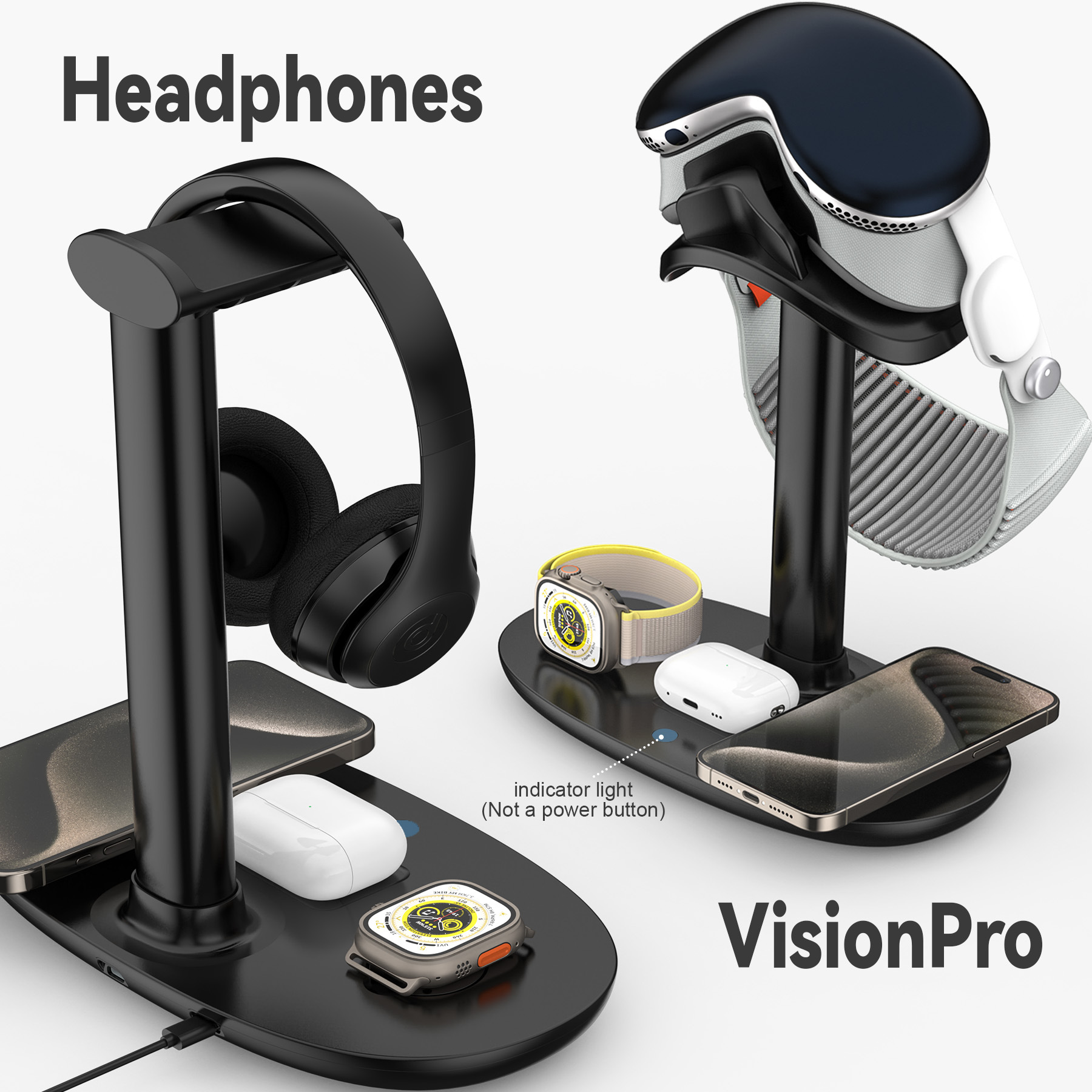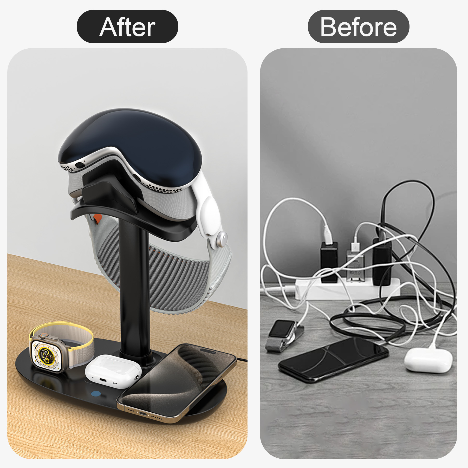 Выбор для держателя очков Apple Vision Pro, четыре в одном: часы, наушники, беспроводная зарядка и хранение
