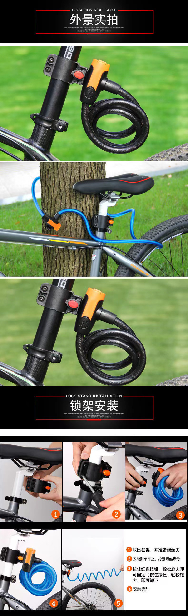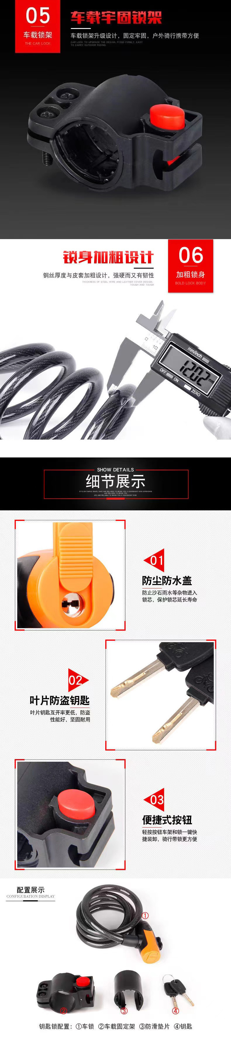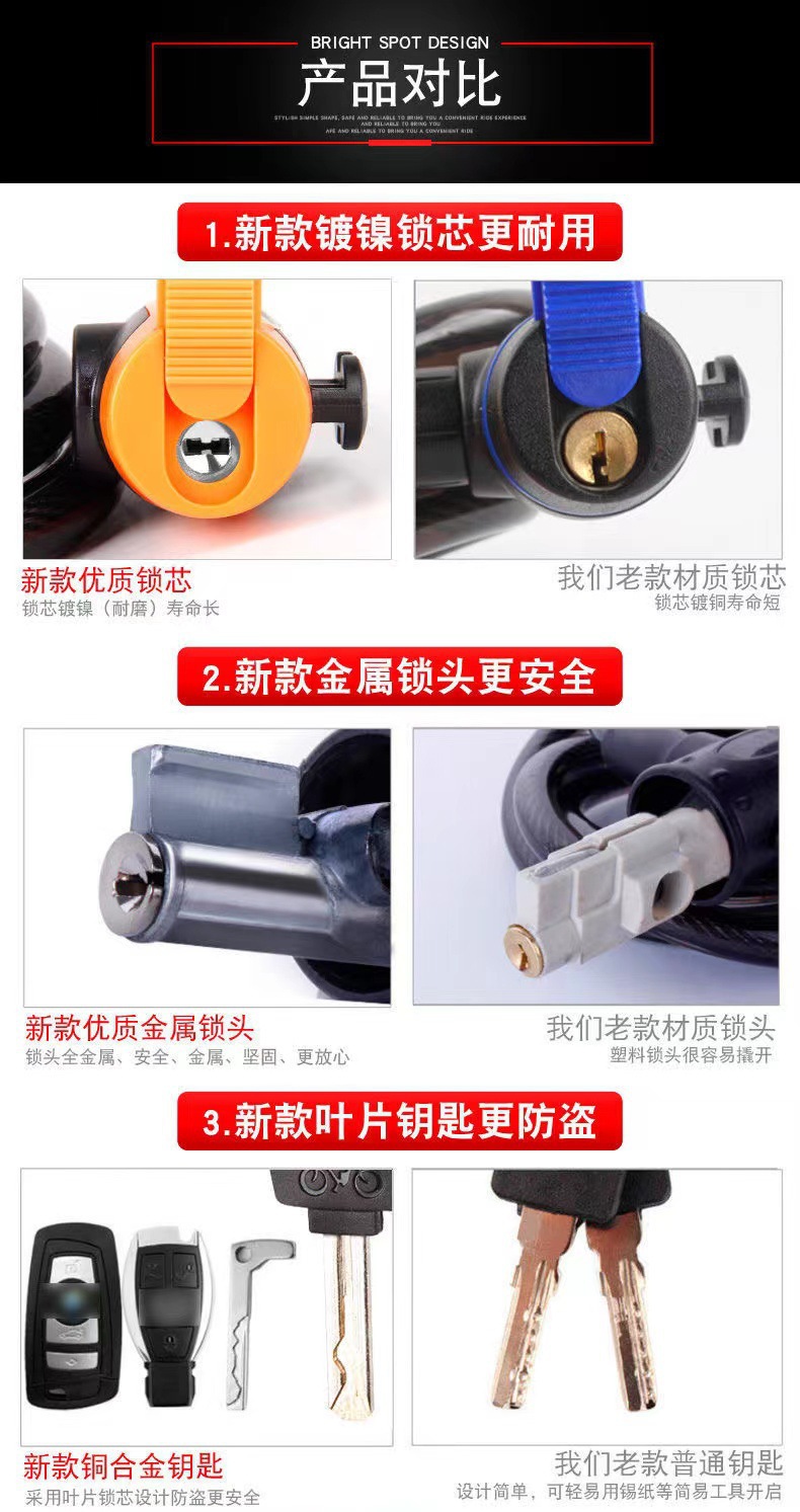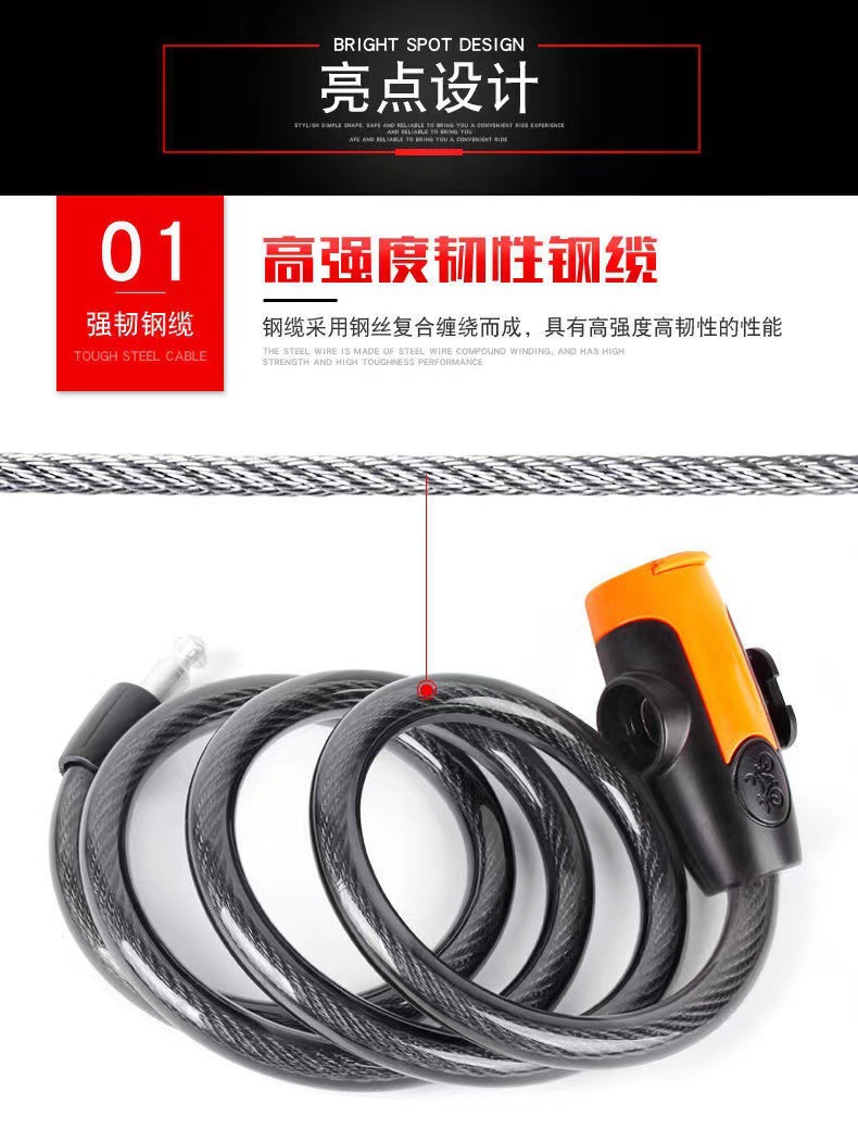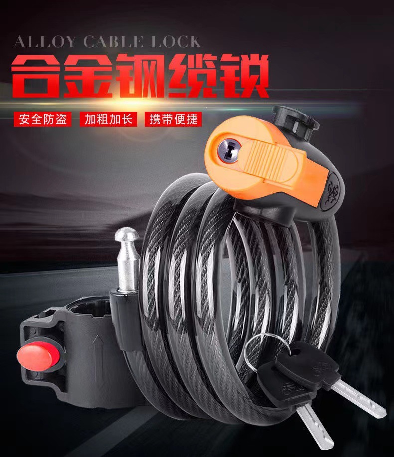 Оптовый проволочный замок, замок для горного велосипеда, противоугонный велосипедный замок, портативный стальной кабельный замок для электрических транспортных средств