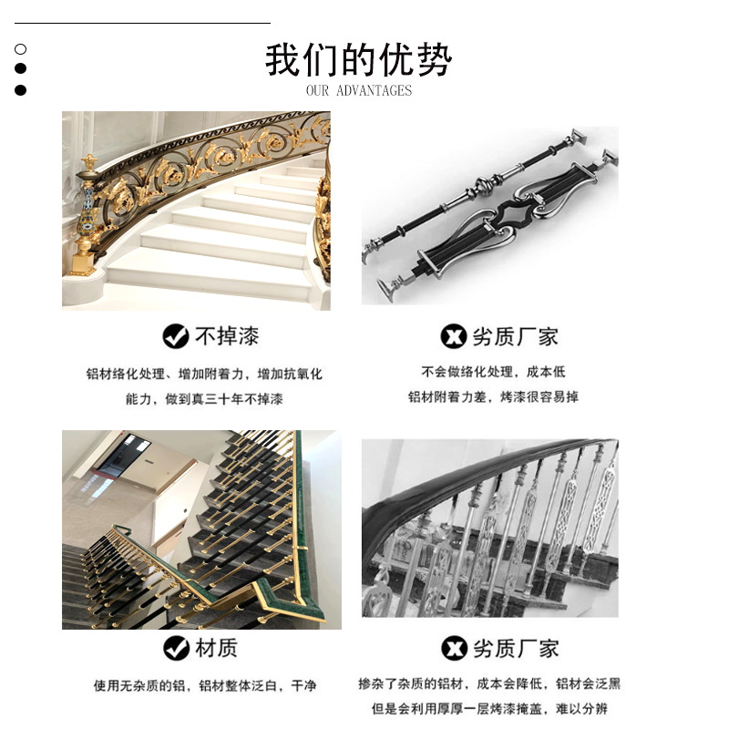 Медные перила для лестницы виллы алюминиевое ограждение лестницы рифленое ограждение лестницы перила позолоченные лестницы завод-изготовитель