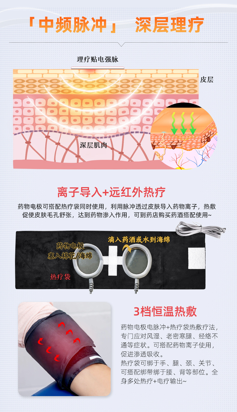 Прибор для комплексной терапии с промежуточной частотой, прибор для введения лекарств, домашний импульсный массажер, электролечение, физиотерапевтический прибор