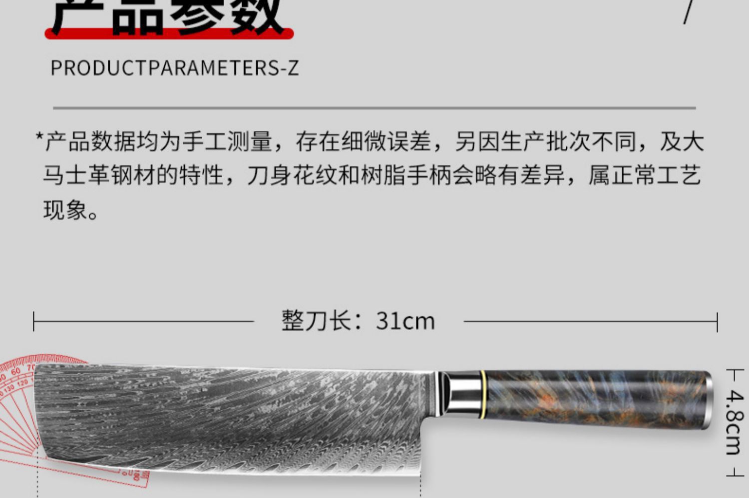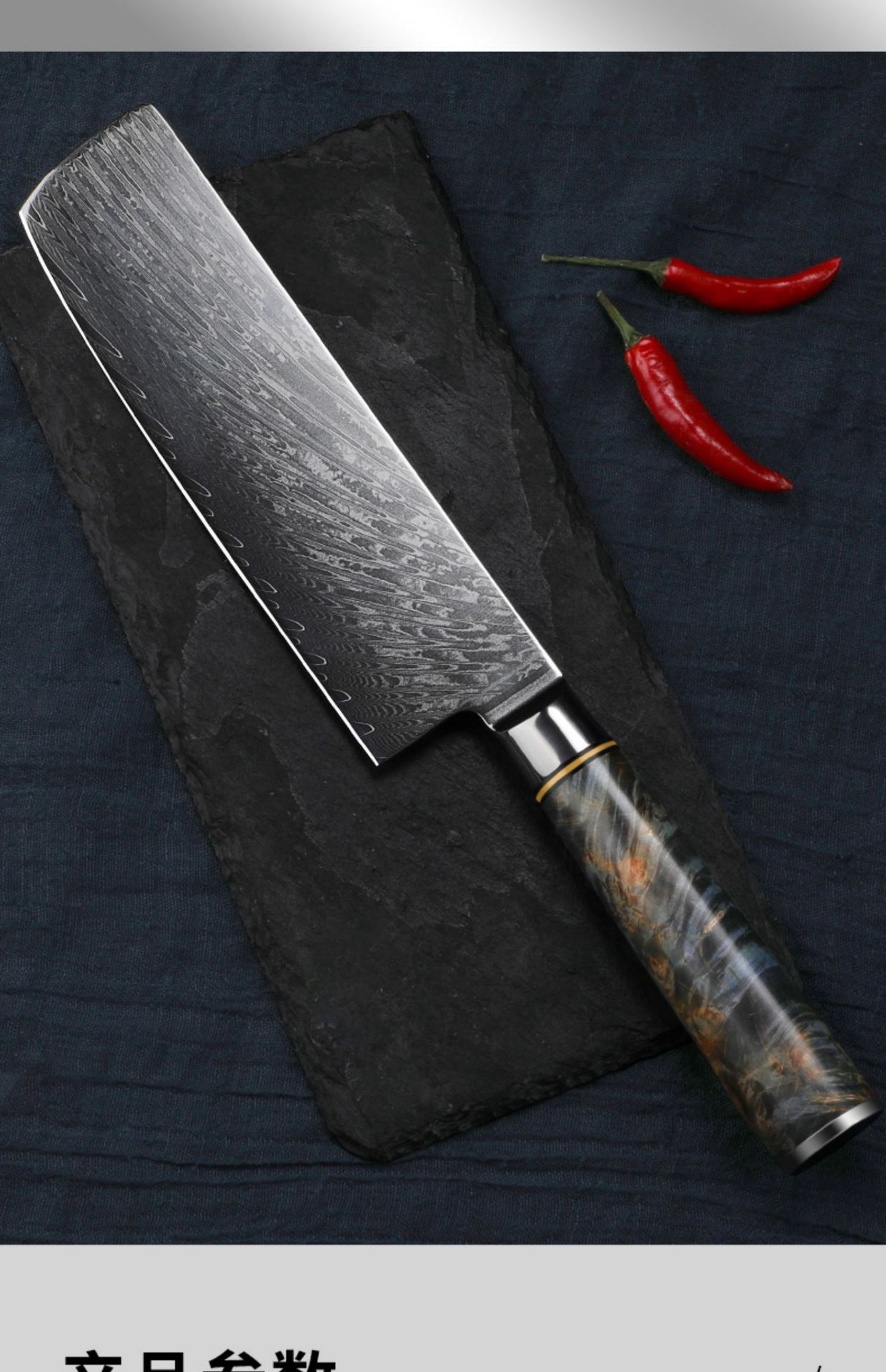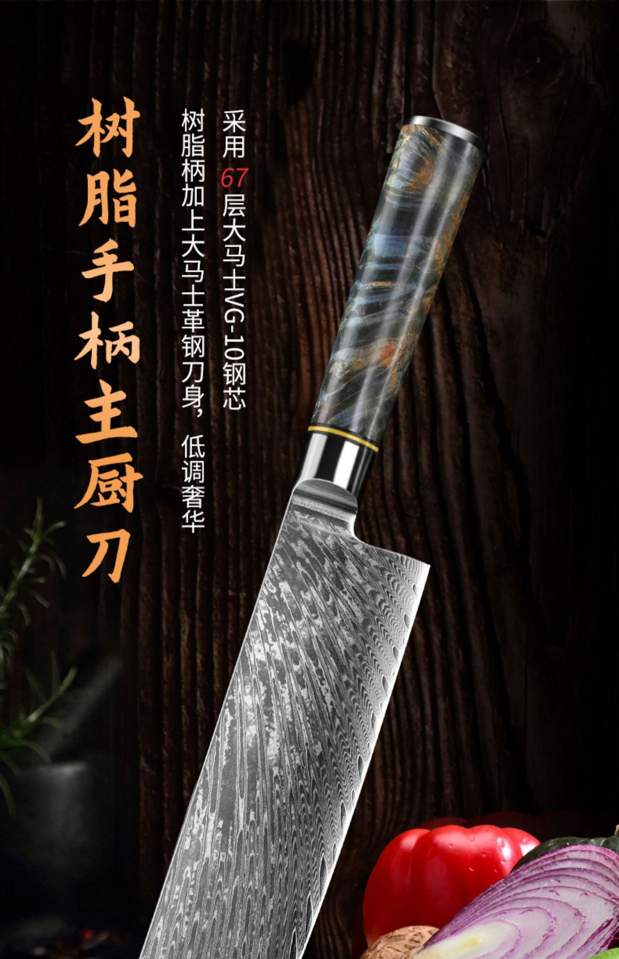 ![]() | Damascus steel cooking knife with resin handle | ¥145.0 / ≈ 1 749 ₽ | 9999 | 5670394898695 |
