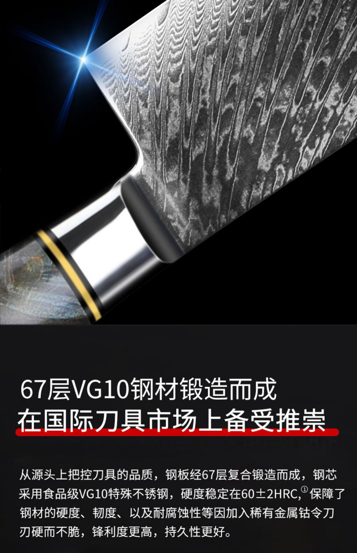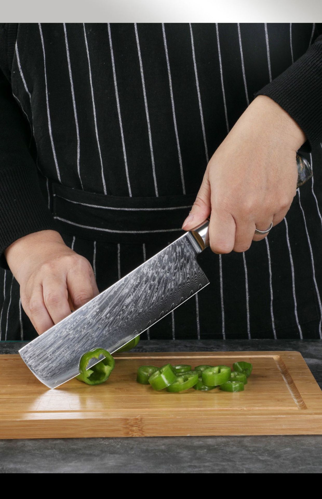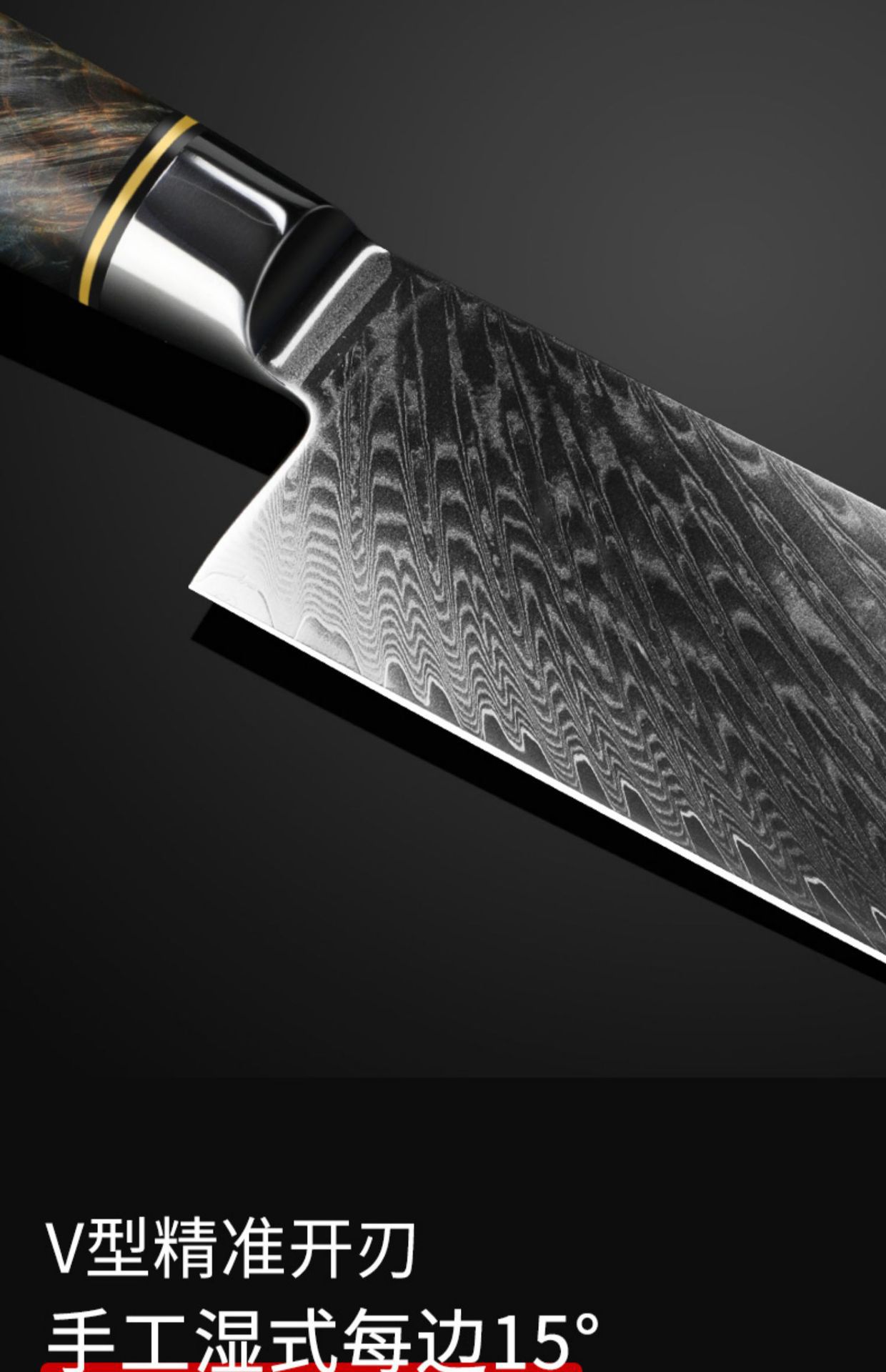 дамасский шеф-нож, кухонный нож, кухонный нож с ручкой из стабилизированного дерева, нож для говядины, инструмент для обрезки хлеба, L