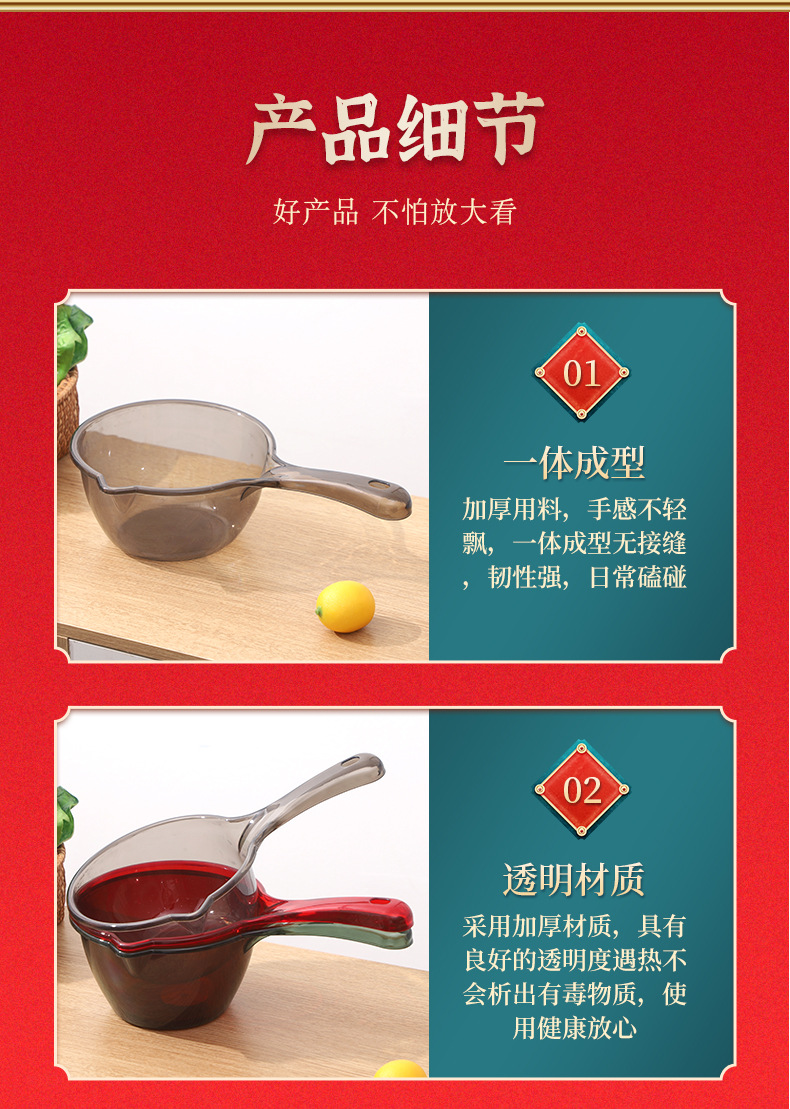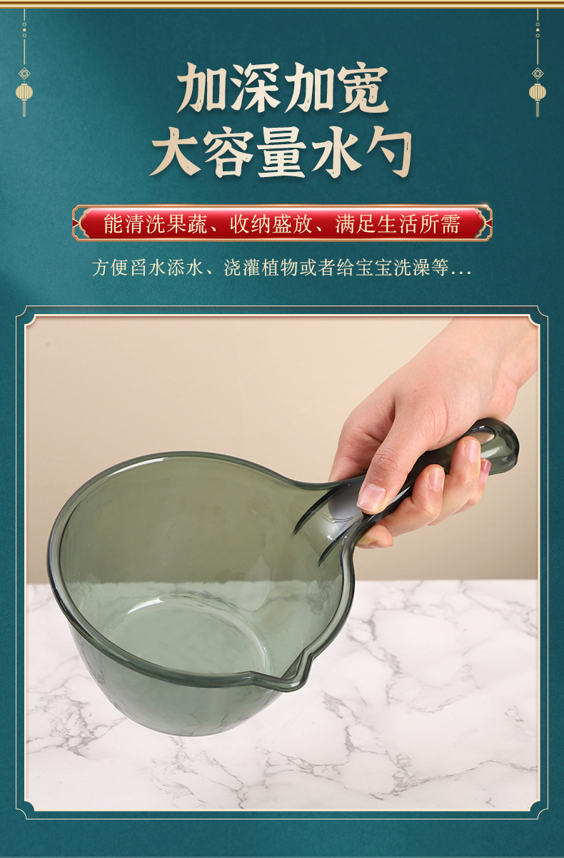 Прозрачный черпак для воды с длинной ручкой, углубленный, большой, утолщенный пластиковый черпак для ванной