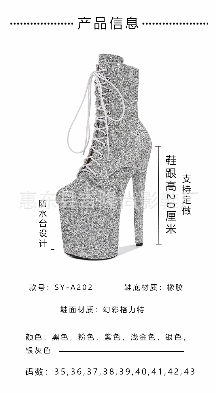 20 см европейские и американские популярные короткие сапоги с тонким каблуком для женщин, супер высокий каблук для танцев на пилоне