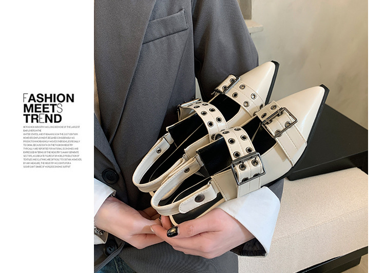 Туфли в стиле Франции, остроносые Мэри Джейн, новые кожаные туфли весна-лето 2024, ретро туфли на толстом каблуке