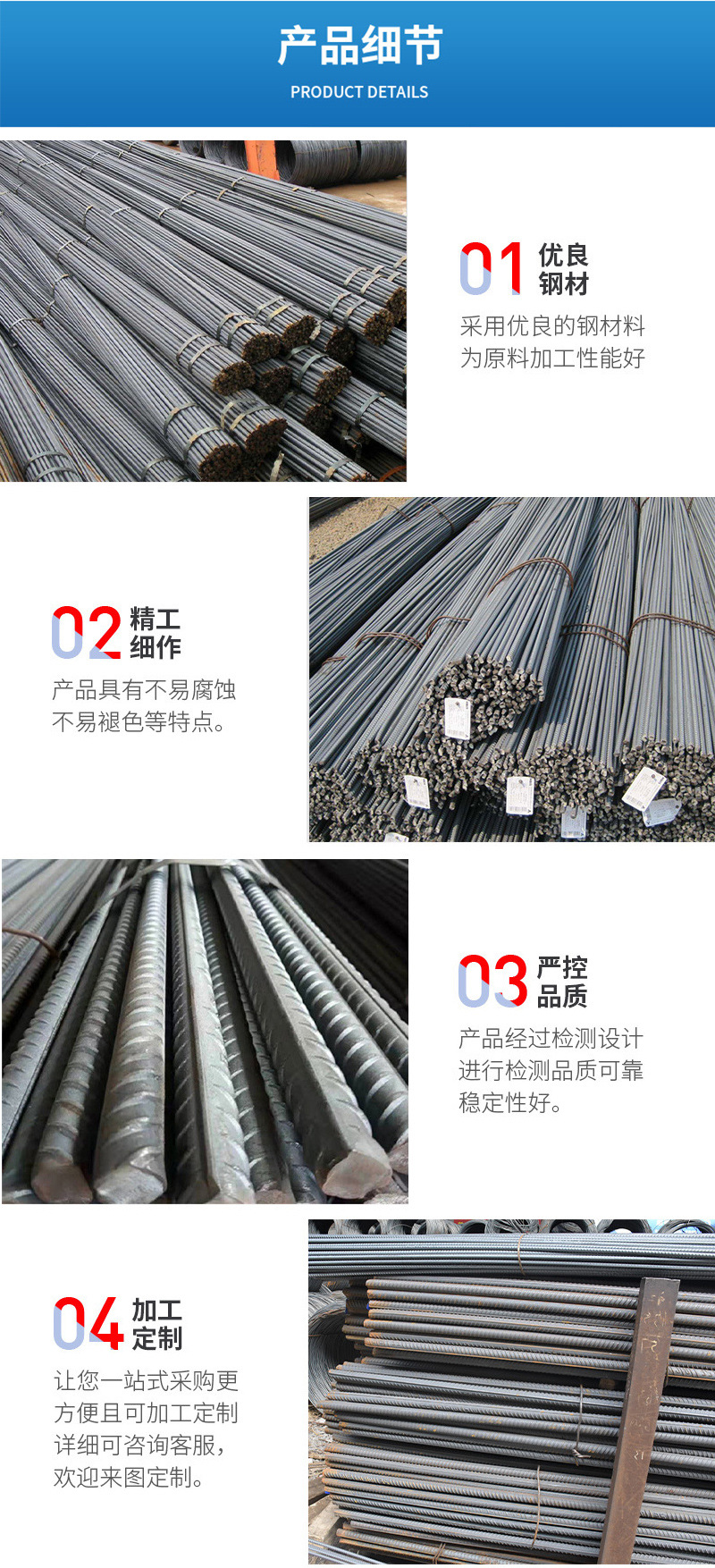 Описание поверхности продукта New earthquake-resistant threaded steel bars, sold in stock, can be customized and processed
