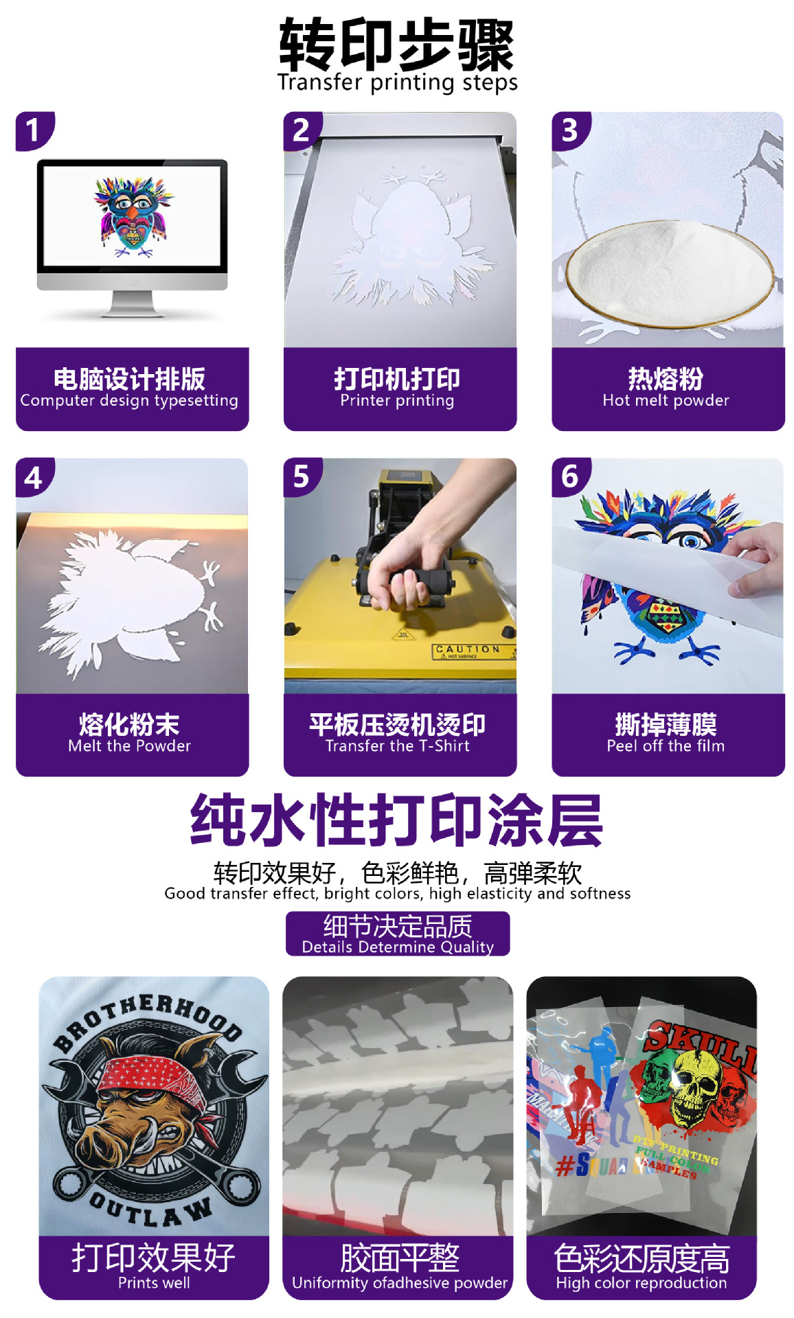 白膜打印膜 热转印膜 热转印转移膜 打印膜 dtf打印膜 反光烫画膜 dtf膜 dtf白墨烫画膜