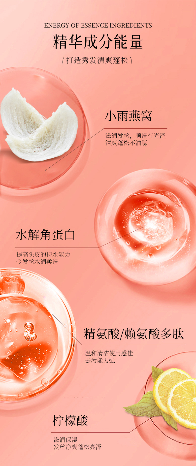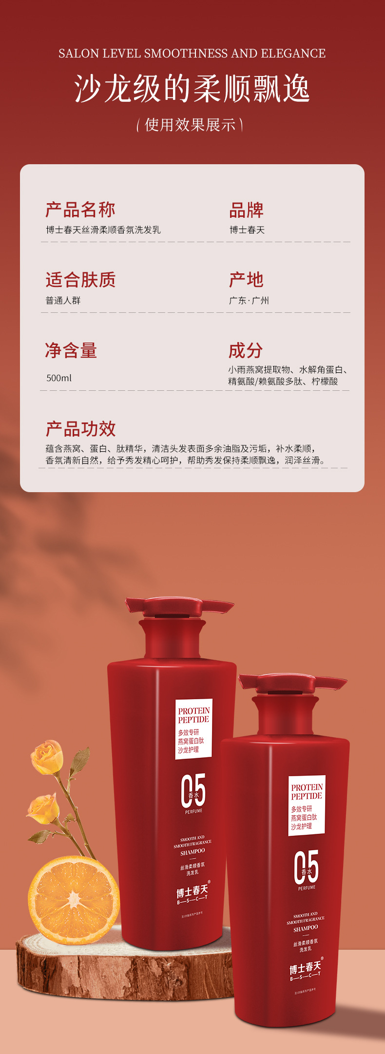 Шампунь с ароматом для женщин Dr. Spring Bird's Nest Protein, шелковистая гладкость, контроль жира, против перхоти, улучшает пушистость