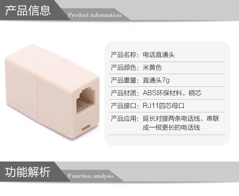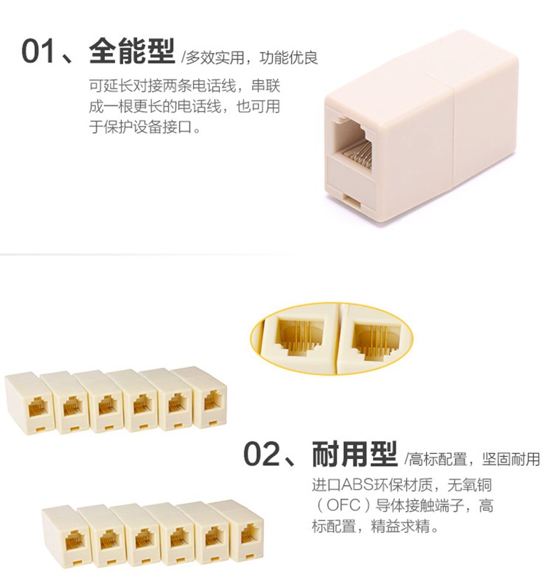 功用:将电话线接起来,延长电话线。