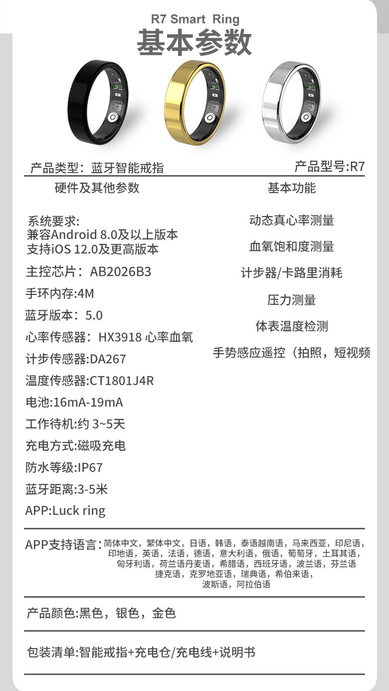 R7智能戒指 可以定制以下外观材质,如有需要定做,联系客服咨询