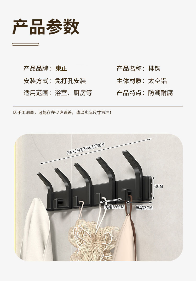 Серый Крюк для Одежды Подвесной Крюк для Стены Тестовый Шкаф Полотенце Ванная Комната Рядовой Крюк Плитка Без Сверления Фиксированный Крюк для Одежды