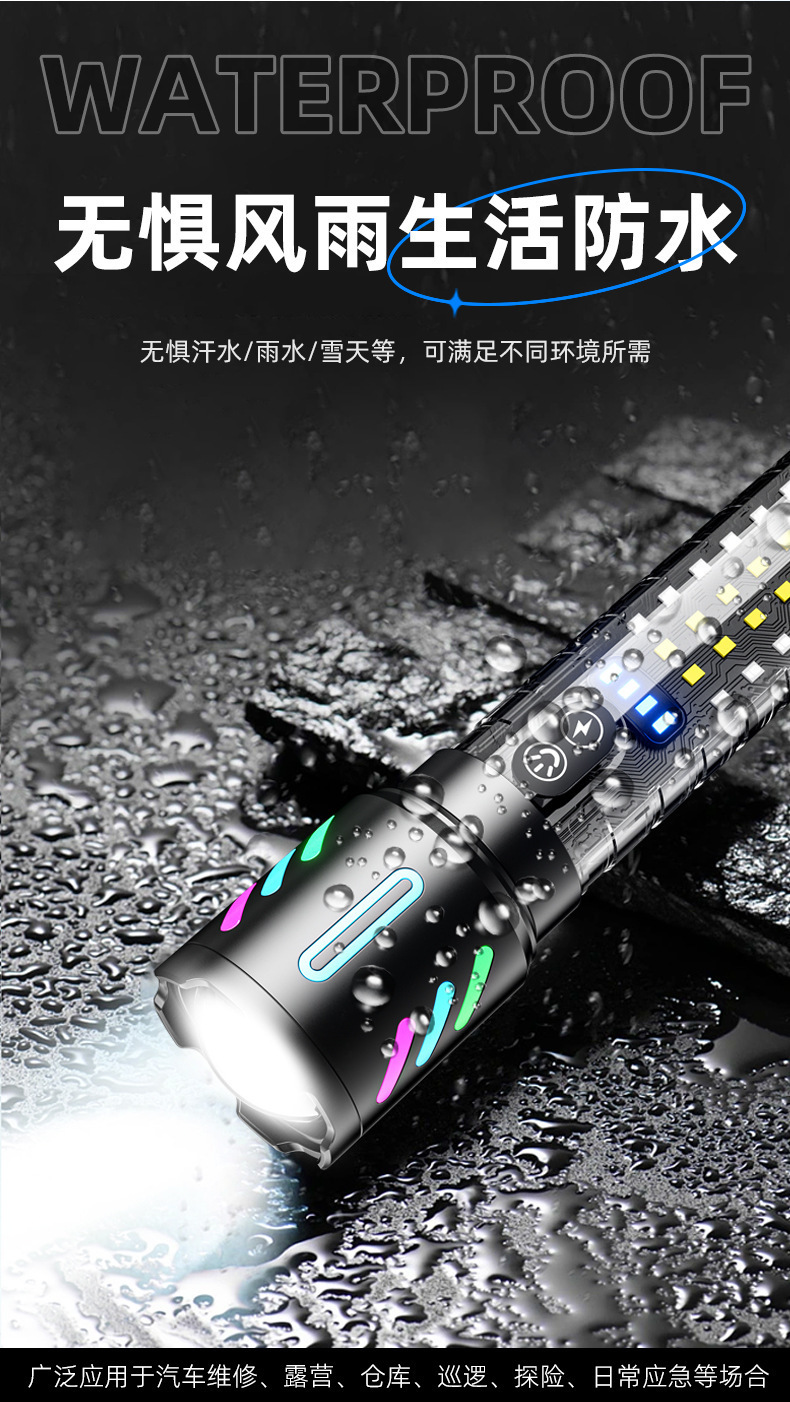 Суперяркий фонарь с светодиодной лентой, дальний свет, встроенный аккумулятор, аварийный, переносной для улицы