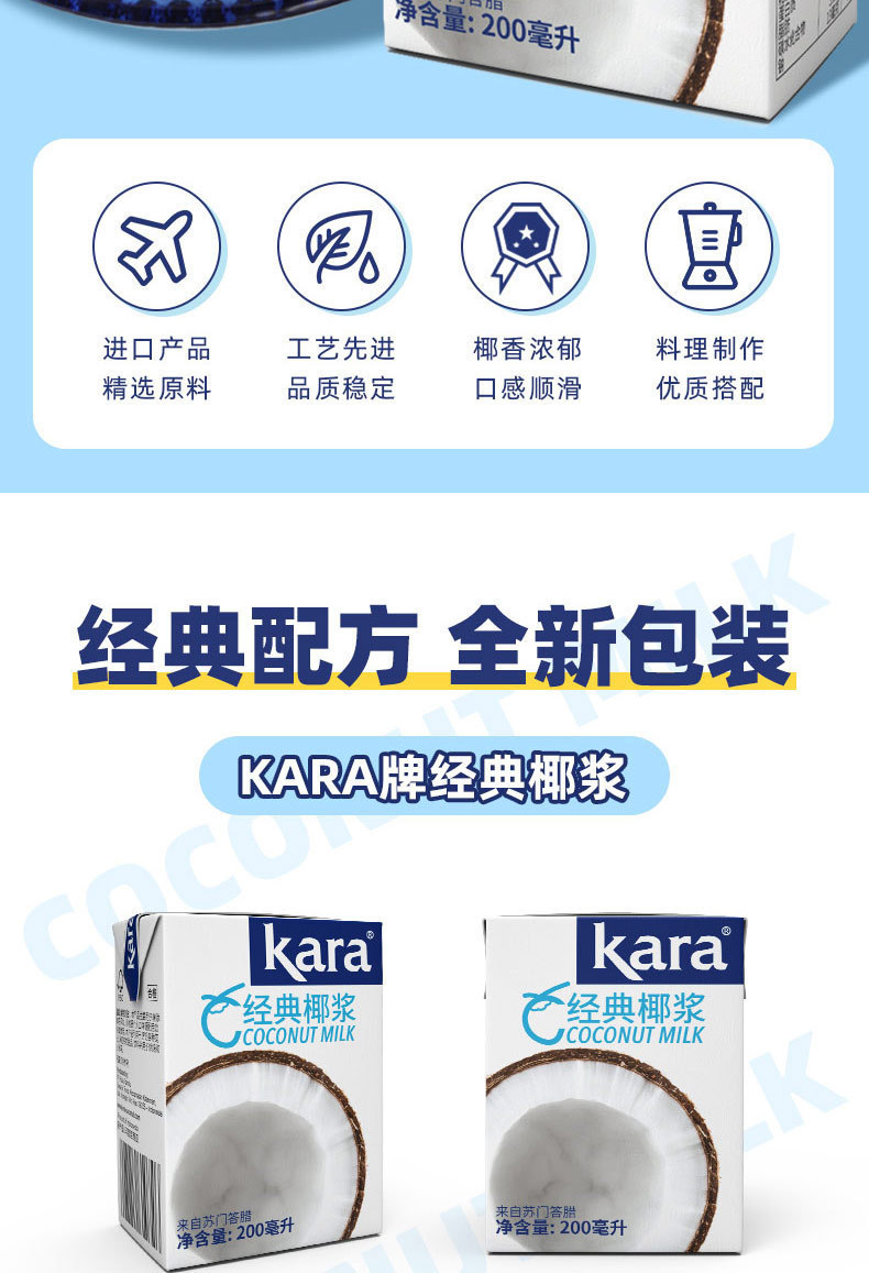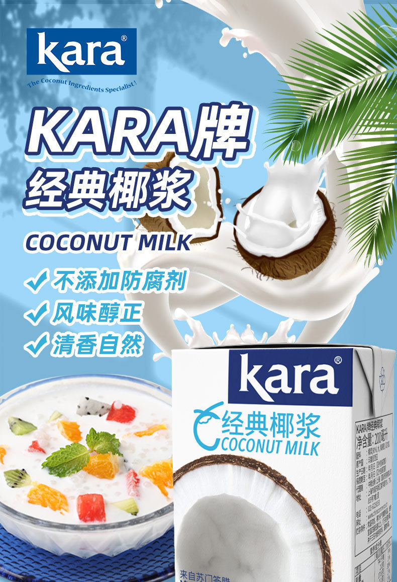 Кокосовое молоко kara Jiale 200ml, импортное, для десертов и молочного чая, бесплатная доставка