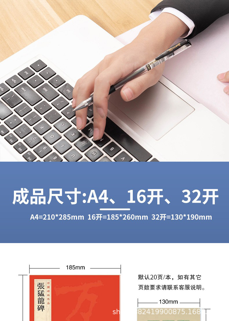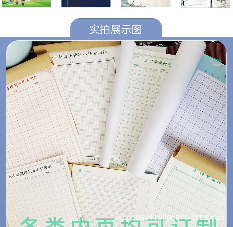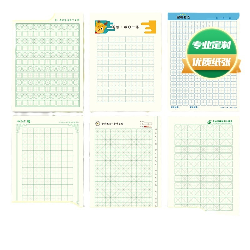Настольная книга каллиграфии с индивидуальным дизайном, сетка Тяньцзы, рисовая сетка и сетка Хуигун, печатный логотип, coated paper, крафт-бумага, рукописный текст