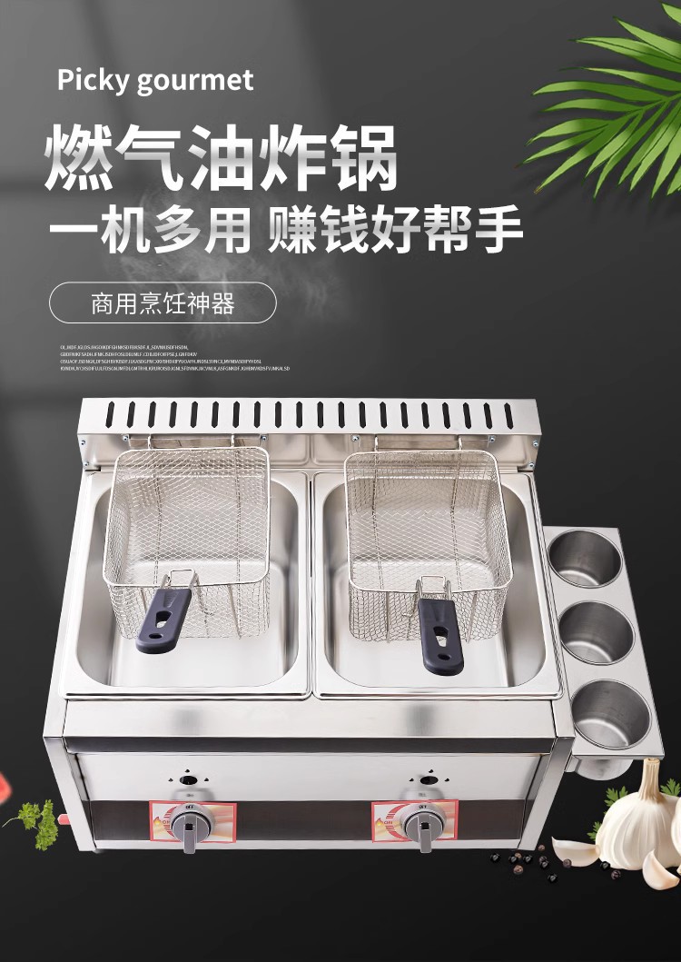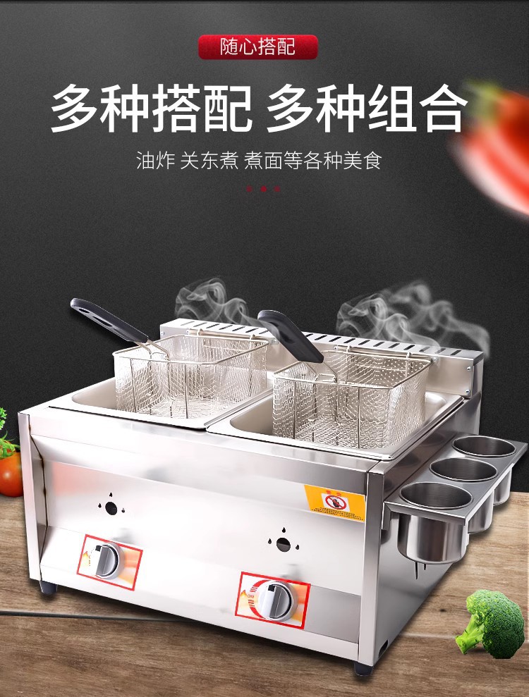 Коммерционная газовая фритюрница, оборудование для жарки на газу, фритюрная плита, машина для жарки теста, двойная цилиндрическая кастрюля